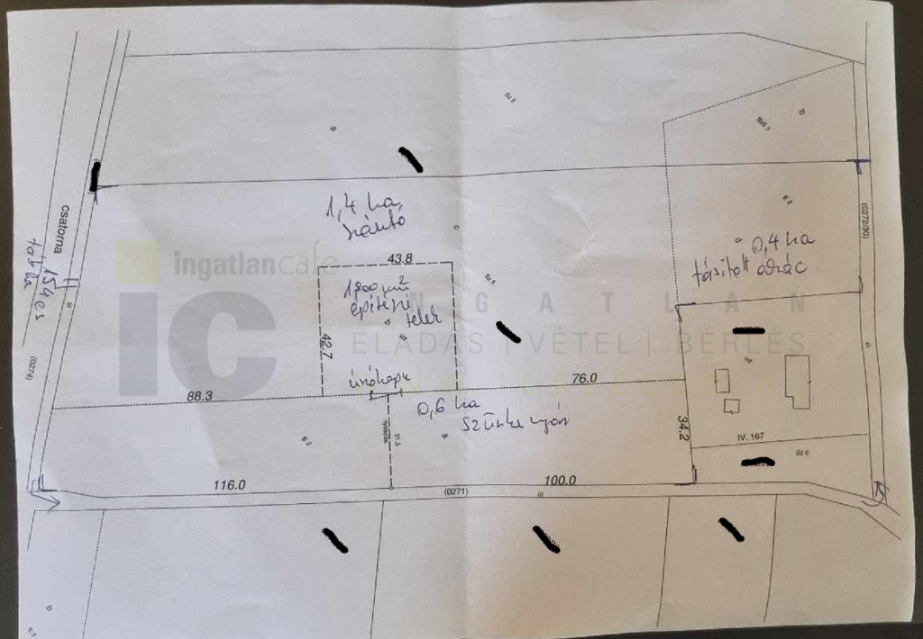 - a szántó területéből 1860 m2 kivett építési terület ( rajzon bekeretezve)