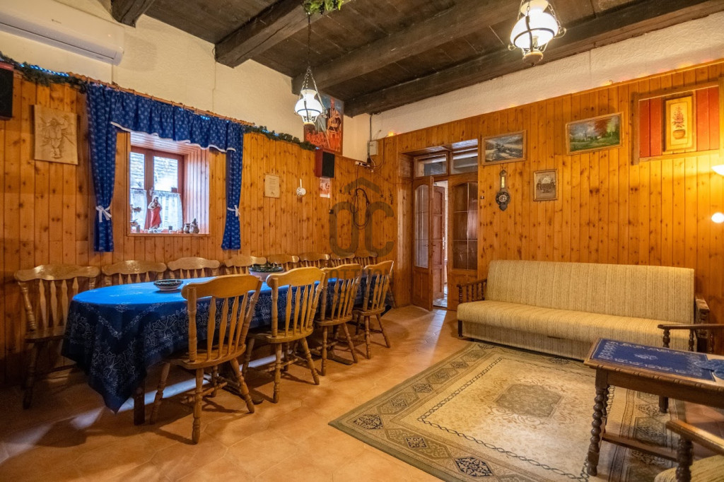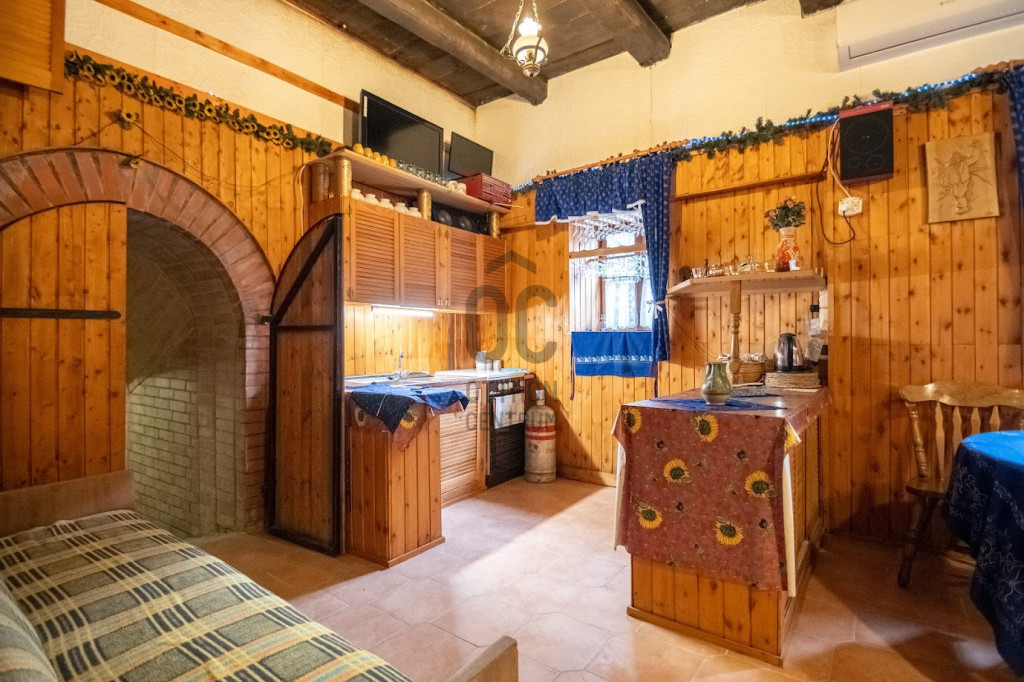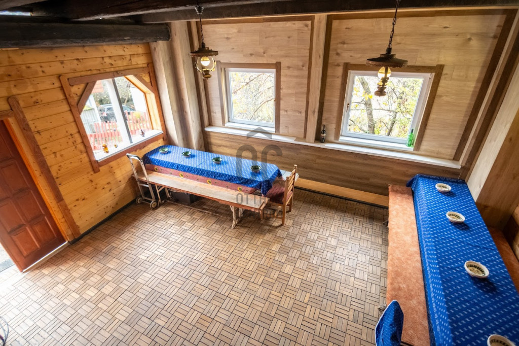 Az belső helyiség vegyes falazatú,a hátsó részen beton megerősítéssel, szigeteléssel, amelyben konyha- étkező- nappali került kialakításra.