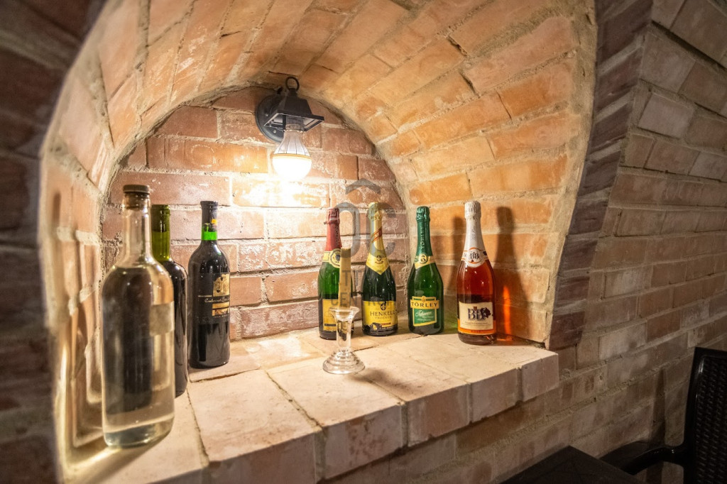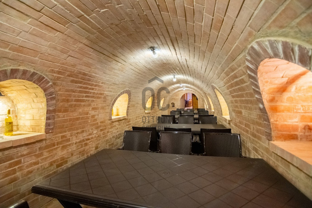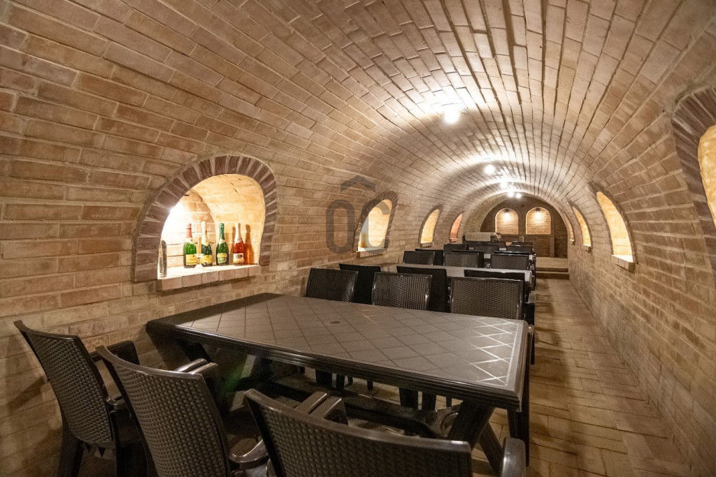 Innen jutunk le a gyönyörű 14 méter hosszú téglázott pincébe. Ennek területe összesen 40.6 m2.
