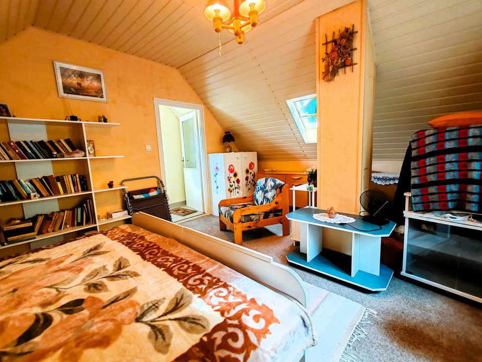 A ház praktikus és otthonos elrendezésű: a földszinten étkező-nappali, konyha és fürdőszoba toalettel található, az emeleten pedig egy nagy, világos szoba kapott helyet. A bejárat előtt tágas, járólappal burkolt terasz várja a pihenni vágyókat – tökéletes hely egy reggeli kávéhoz, vagy egy pohár szekszárdi borhoz a naplementében.