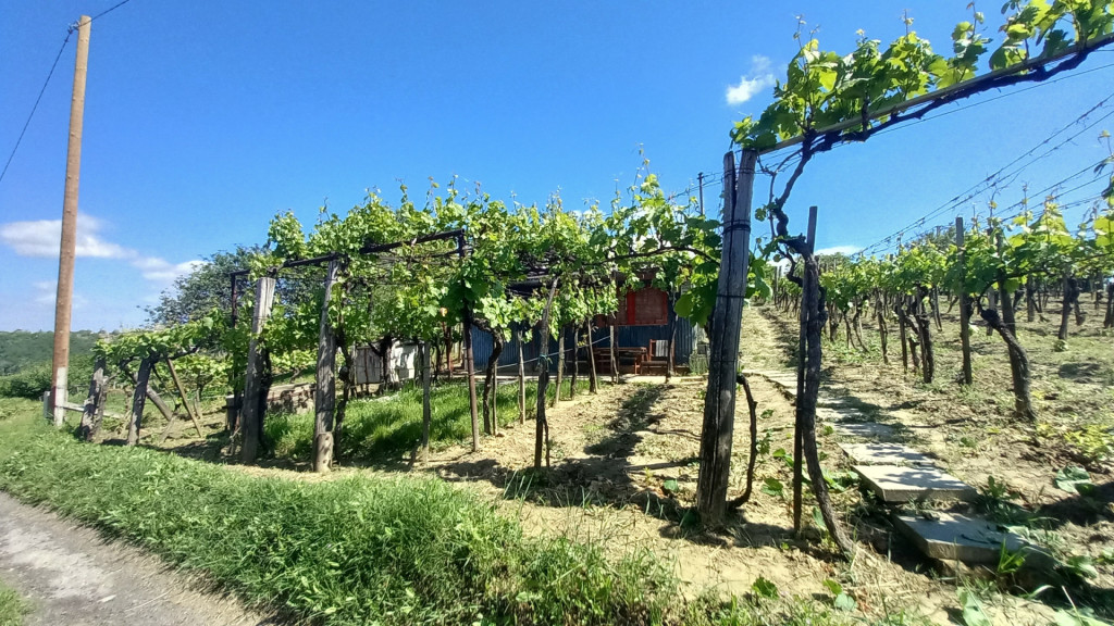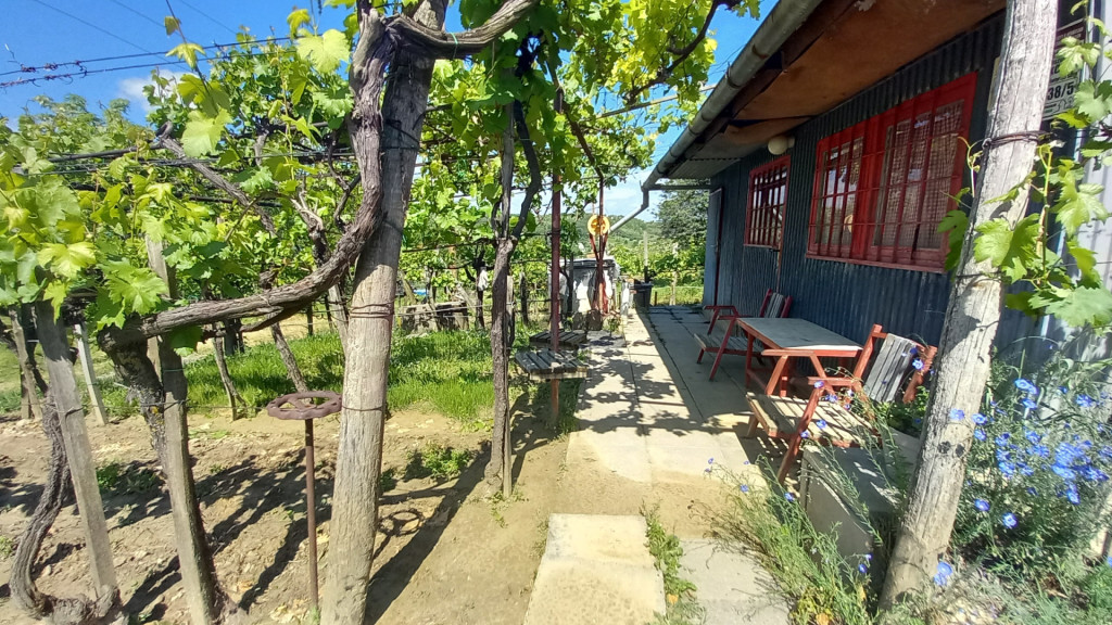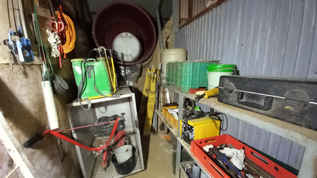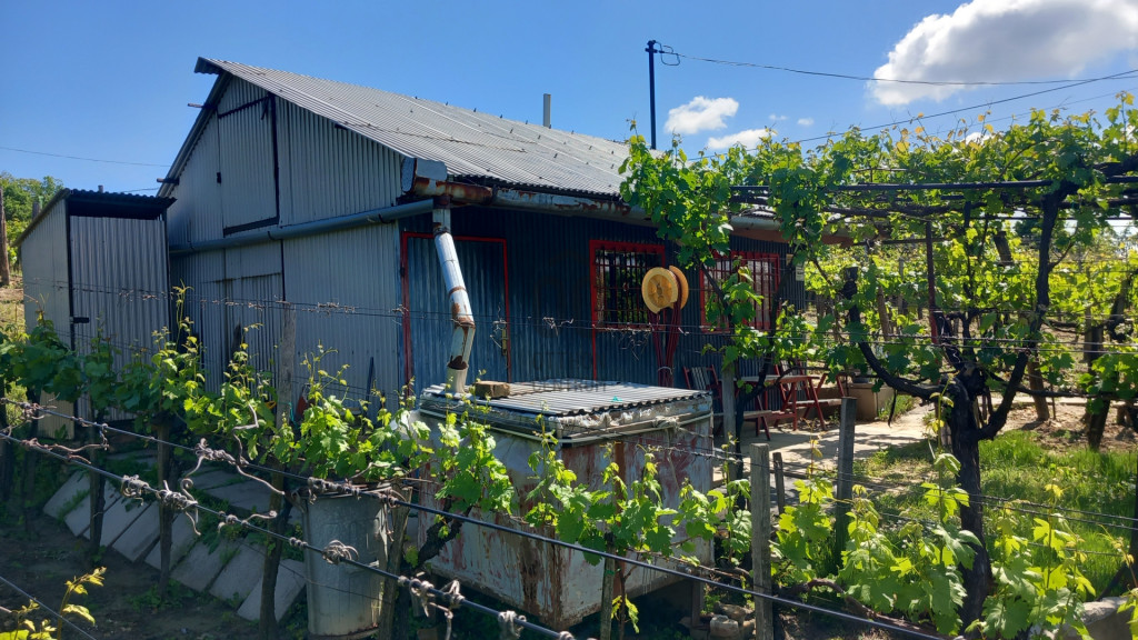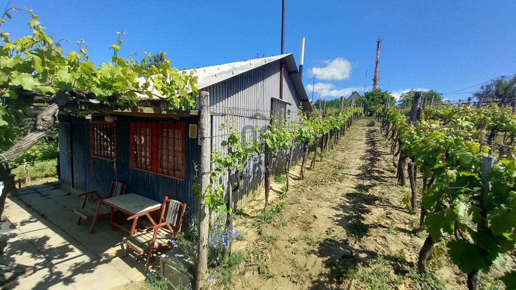 A horganyzott acéllemezes, zártszelvény szerkezetes épülethez egy 8 m2 – es szép tégla építésű pince kapcsolódik. A közművek közül a vezetékes víz és a villany bekötésre került. A fűtés kályhával és elektromos hőleadókkal is megoldható. A területen jelenleg szőlőt művelnek / kékfrankos, olaszrizling /, de több őszibarackfa is ontja gyümölcsét.