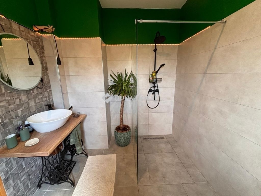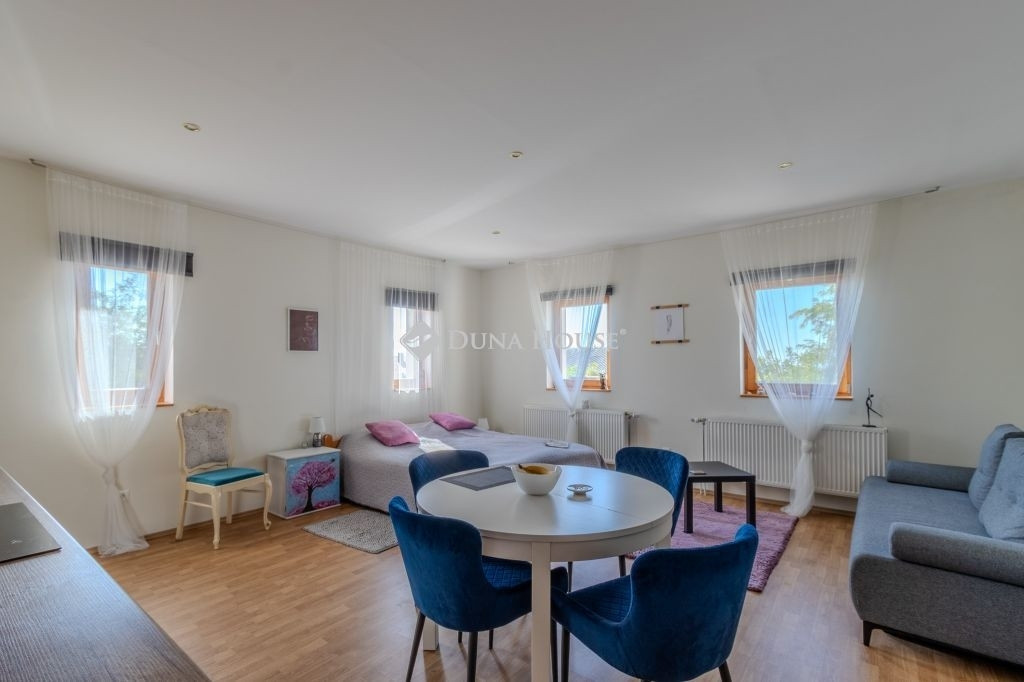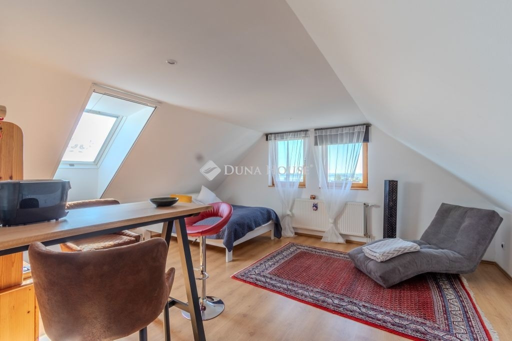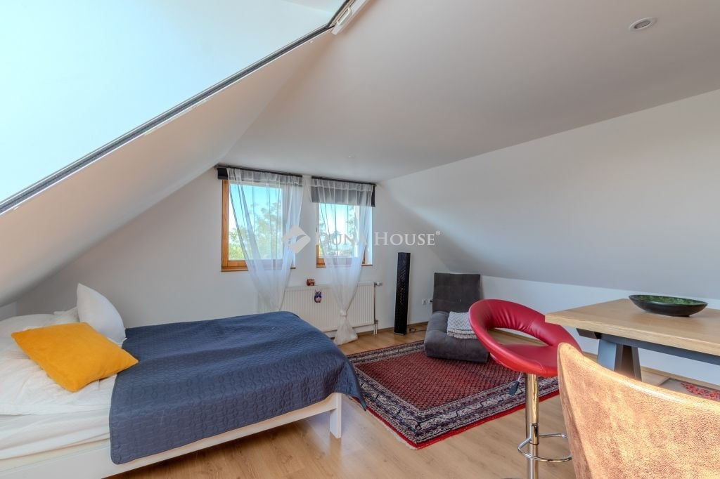 Az ingatlan egy közel 300 m²-es, enyhén lankás telken épült. A háromszintes épületben két különálló, teljesen berendezett apartman került kialakításra, önálló bejáratokkal és külön lépcsőházzal, így egymástól függetlenül is üzemeltethetők.