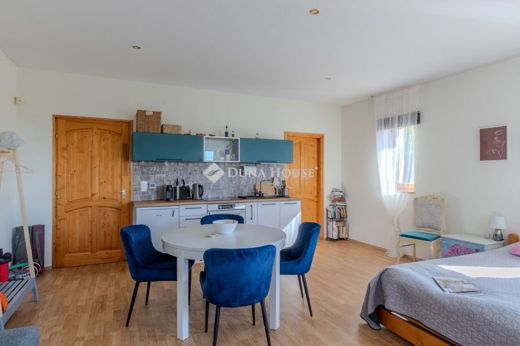 Az alsó szinten további, sokoldalúan hasznosítható tér áll rendelkezésre, amely közösségi térként, wellness részlegként vagy autentikus borházként is kialakítható. Ehhez kapcsolódóan mosó–előkészítő helyiség, valamint egy hátsó pincelejárat is kiépítésre került, amely később teljes értékű pincévé bővíthető.