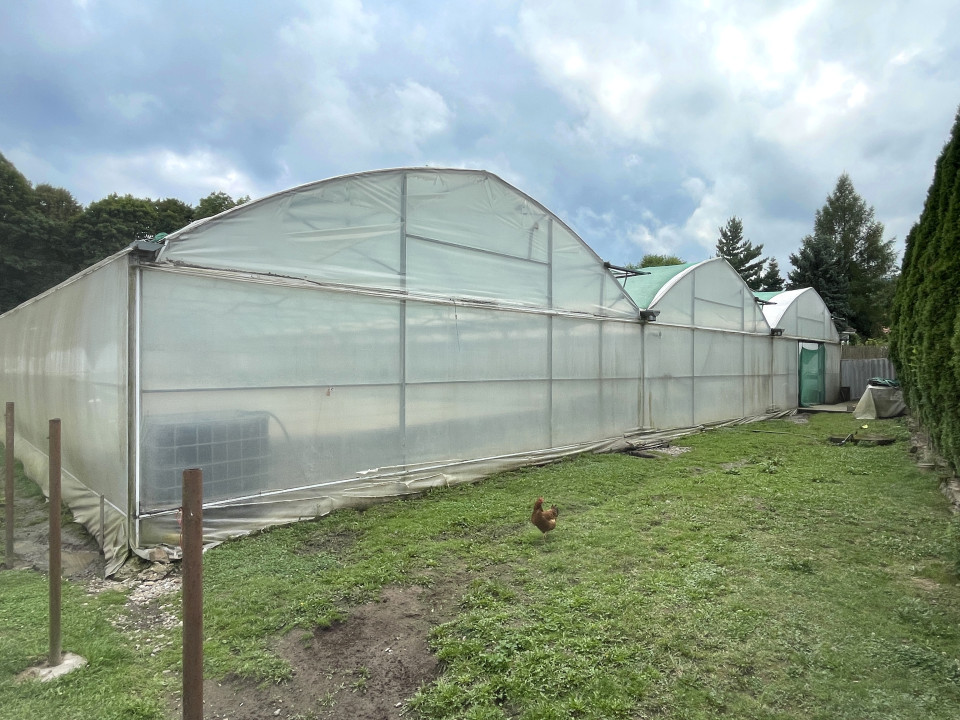1300 nm, háromhajós, prémium kategóriás Filclair növényház; robosztus, tűzihorganyzott acélszerkezet; jó állapotú, kétrétegű, hőszigetelő fólia; gépi szellőztetés; fatüzelésű, illetve gázüzemű fűtés; világítás; öntözőrendszer saját kútról.