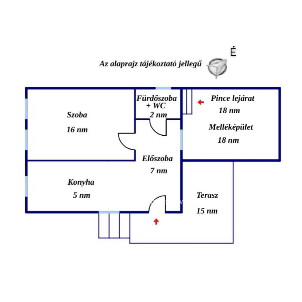 Tartozik hozzá egy 18 nm-es melléképület, amelyből nyílik egy az épület alá benyúló pince is, mely szintén 18 nm-es.