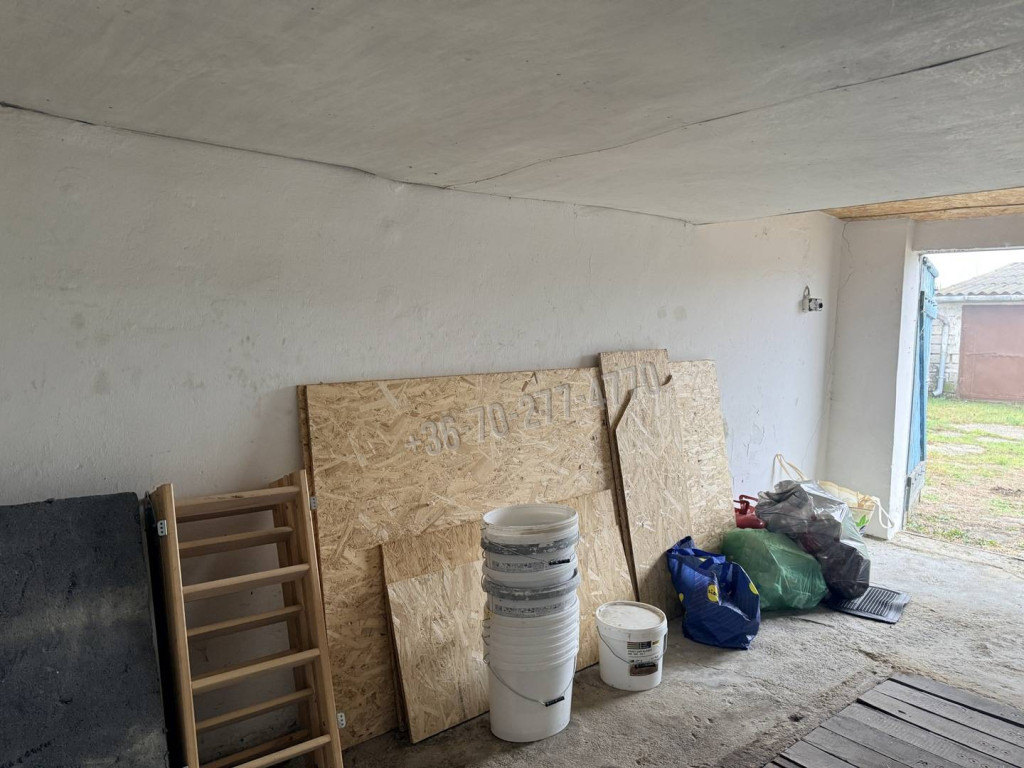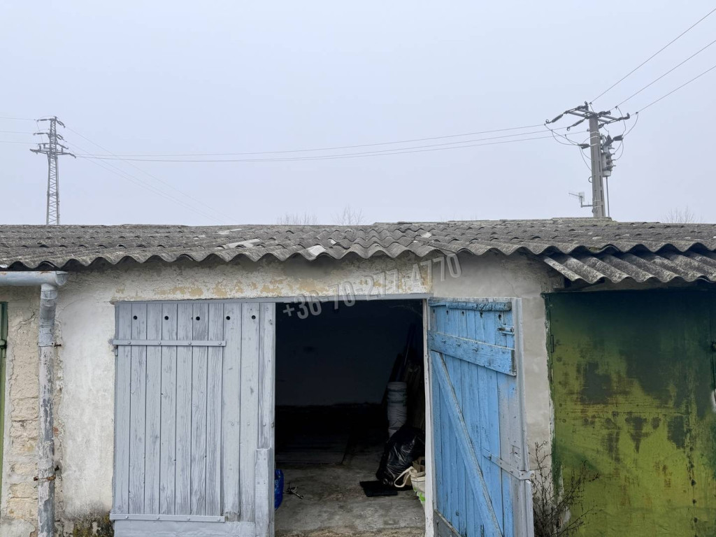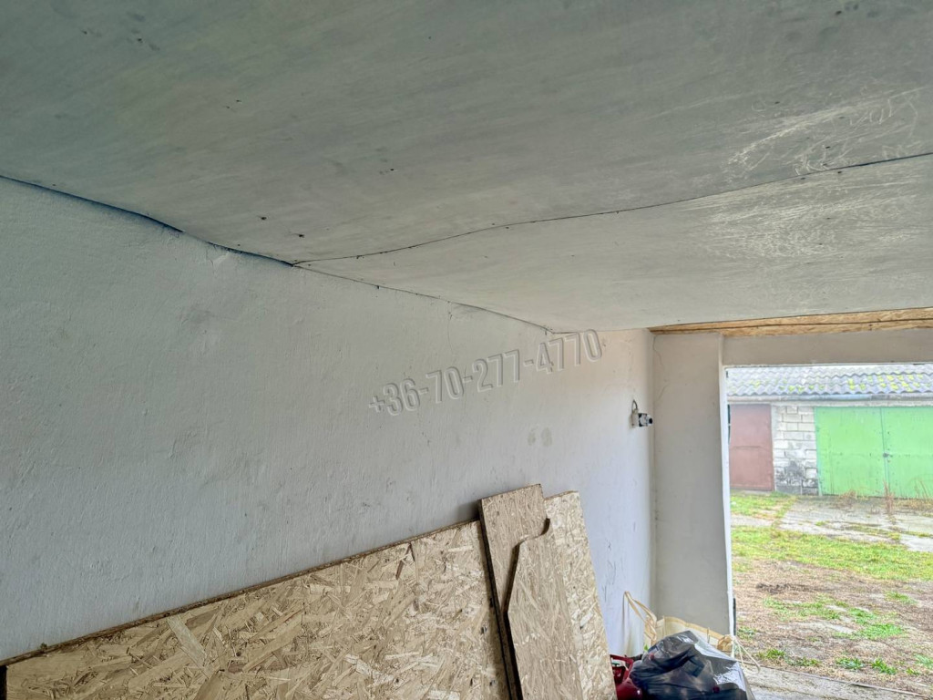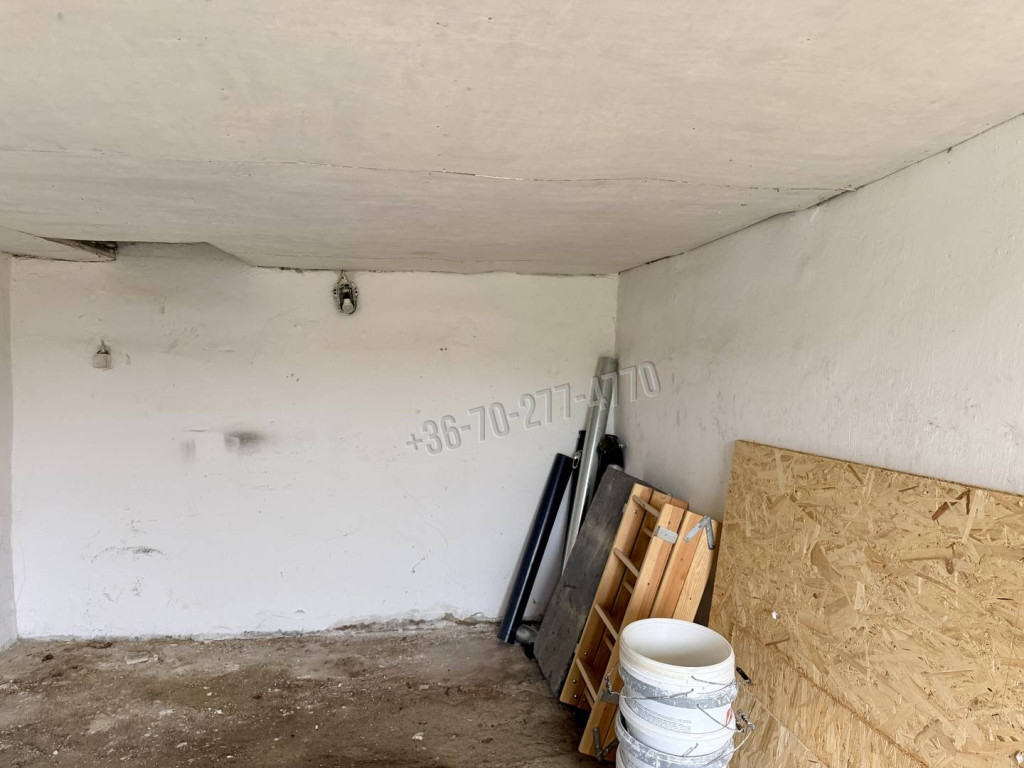 A garázs két szárnyú fa ajtóval van szerelve, betonozott aknával és pakoló padlással rendelkezik. A falak vakolva, festve vannak, a belső állapot közepes, néhol javításra szorul. A tetőt hullámpala fedi, jó állapotú, nem ázik. Villany van, a szomszéd garázsból (annak tulajdonosával megegyezve) átvezetve. A fogyasztás költségével a szomszéddal egyeztetni szükséges. Illetve igény esetén lehetőség van lecsatlakozni és saját szerződést kötni, villanyórát igényelni.