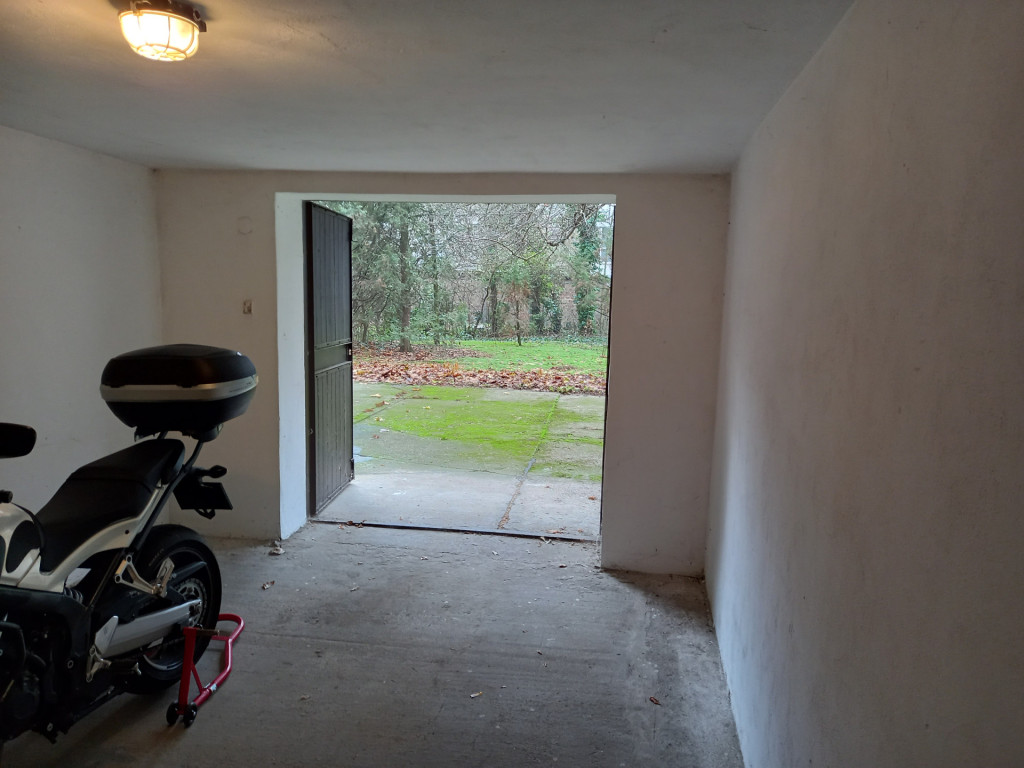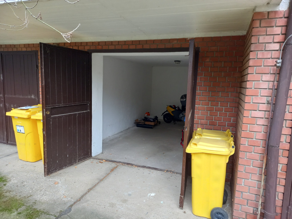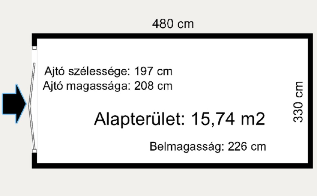- Bejárat: kétszárnyú acélkeretes faborítású garázskapu;
