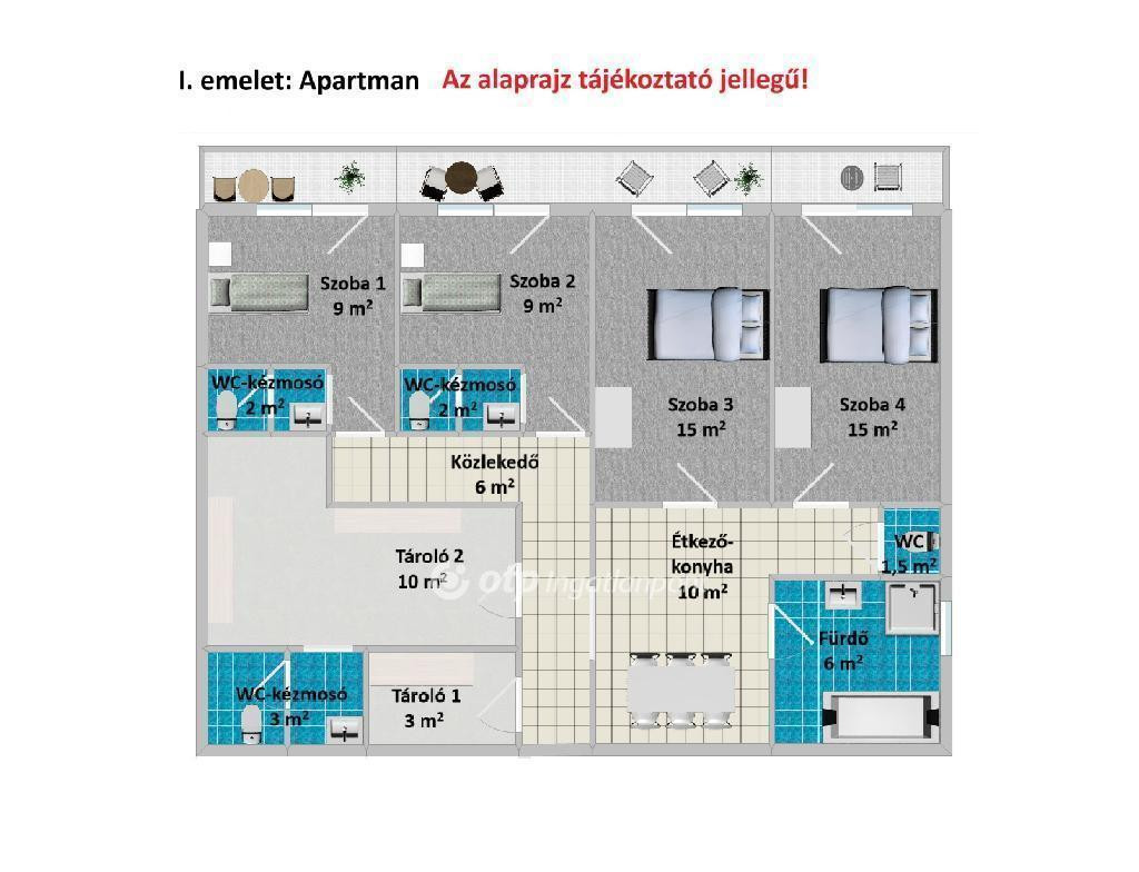 Emeleten: 2 lakás (ebből az egyik apartman jellegű)