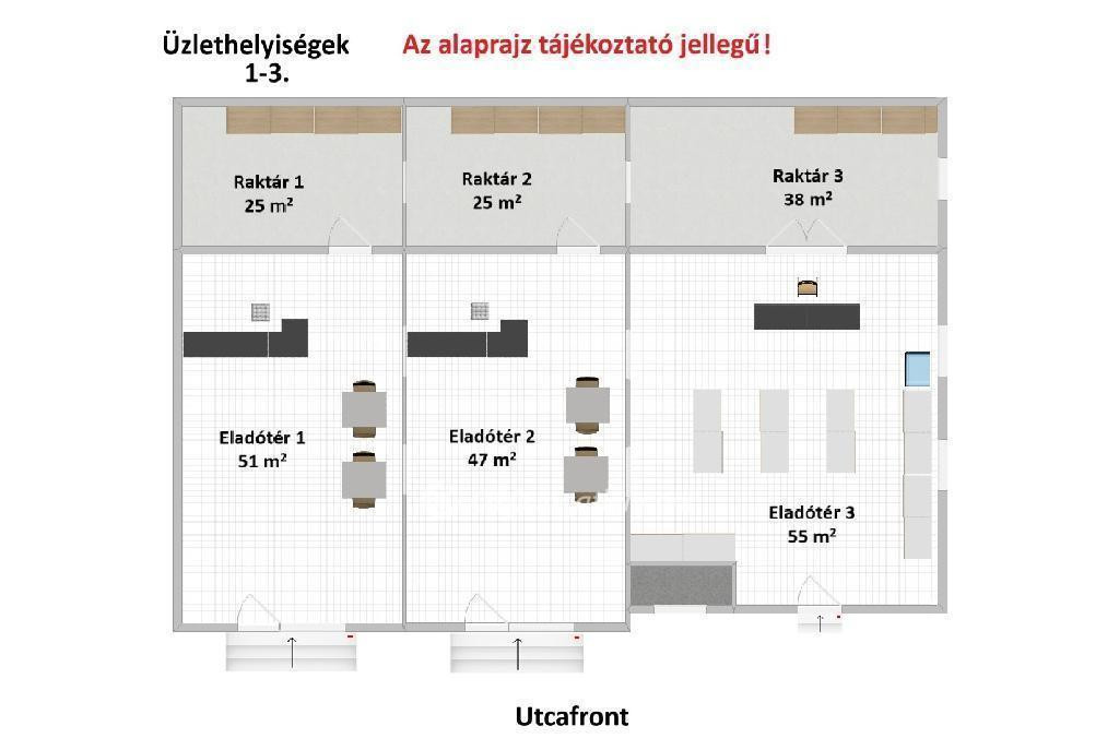 Földszinten: 4 db utcafronti üzlethelyiség, amelyek étterem, pékség, virágbolt, iroda vagy bármilyen kereskedelmi tevékenység számára kiválóan alkalmasak