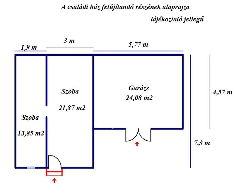A felújítandó, téglából épült házrész kettő szobából és egy garázsból áll. Az összes helyiség beton burkolatot kapott. A fűtés jelenleg nem kialakított. A két szoba összenyitása a házzal egyszerűen megoldható.