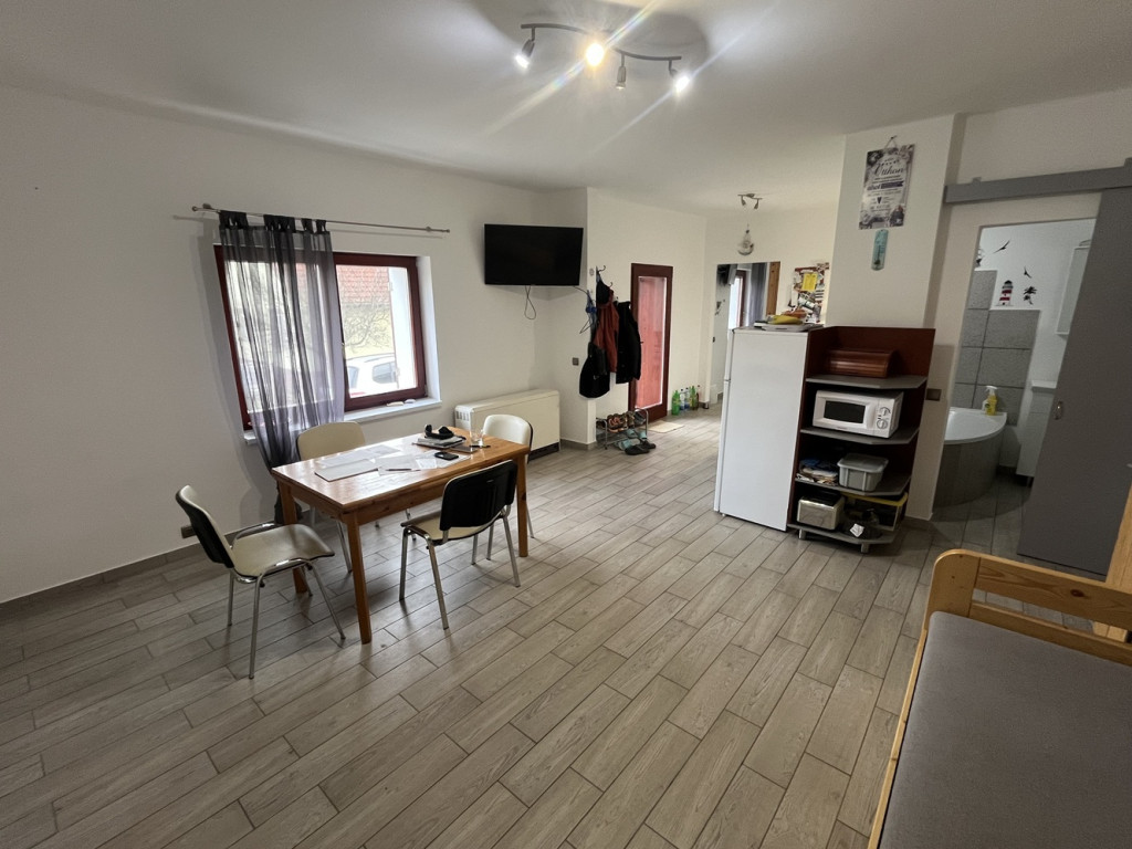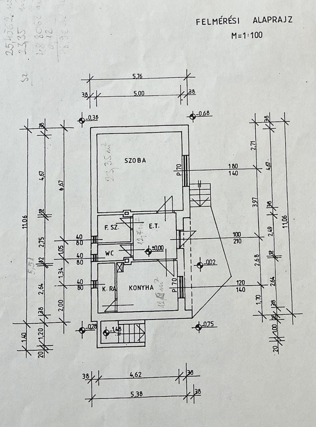 Elrendezés nappali + 1 hálószoba. Az ingatlan alatt 12 m2 pince található. A tetőtér beépítetlen.