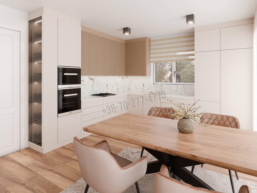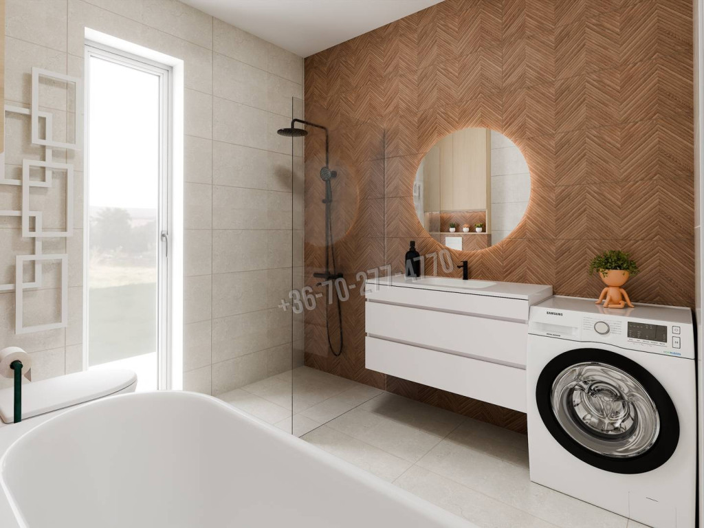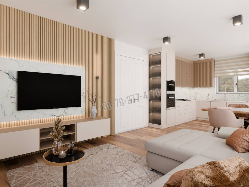 A hirdetésben szereplő képek látványtervek. Ezen tervek szerint készülnek a belső terek; amennyiben a leendő tulajdonos szeretné, megbeszélés alapján módosítható a design.