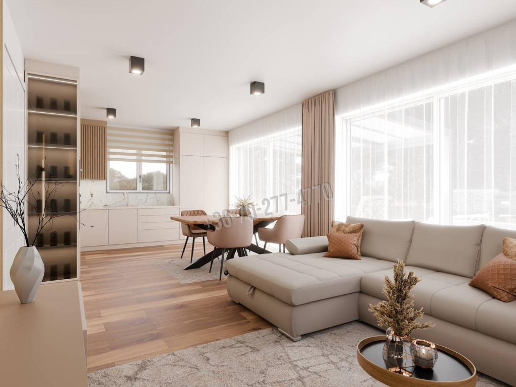 A tágas és világos nappaliból a nagy üveg felületen keresztül csodás a kilátás, illetve innen nyílik a teraszkapcsolat! A közös időtöltésre alkalmas tágas térben a konyha - étkező - nappali részt csak a padlóburkolatok választják el egymástól, mégis kiváló harmóniát és egységet teremt a választott design.