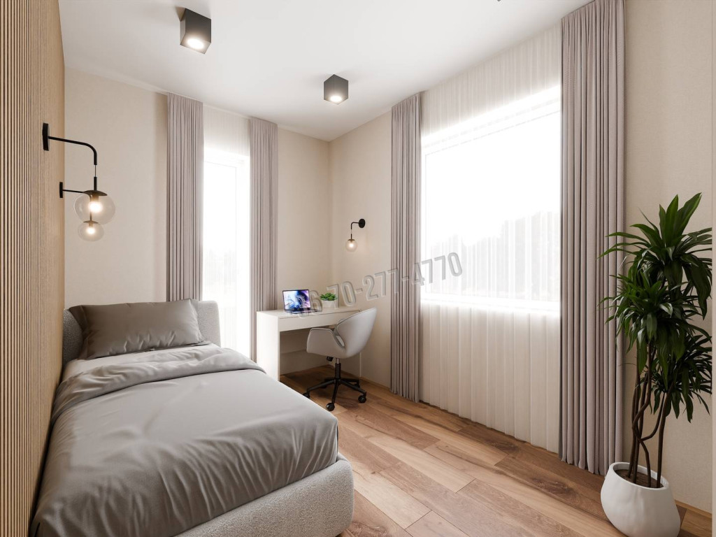 A hálószobák és a fürdőszoba egy közlekedőről nyílik, mind külön bejáratos, így a privát szféra is fenntartható.
