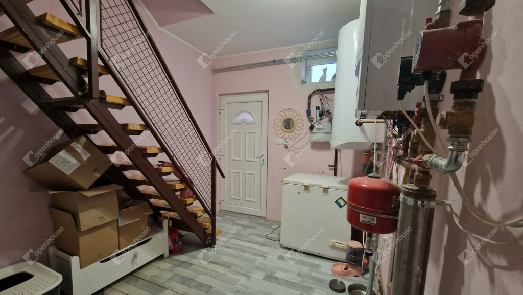 Előszoba, konyha, fürdőszoba, háztartási helyiség, étkező, nappali két kényelmes méretű szoba. Étkezőből nyílik a lépcsőház, ahonnan a tetőtéri szint megközelíthető illetve a gépészet is itt található. Ebből a helyiségből az udvar felé szintén adott egy kijárat.