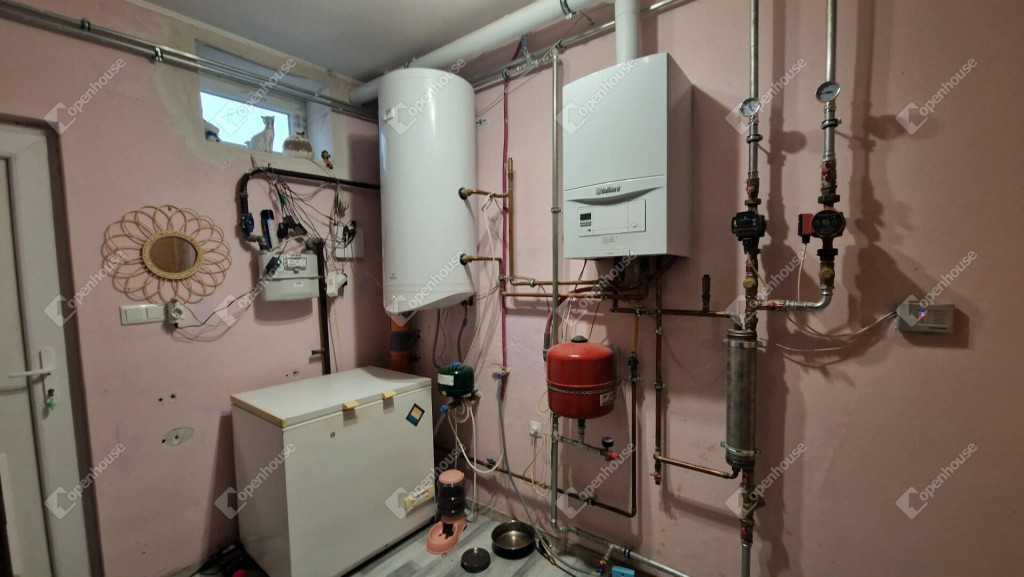 fűtés és melegvíz: kondenzációs gázkazán, lapradiátoros hőleadókkal és három Split klímaberendezés adott
