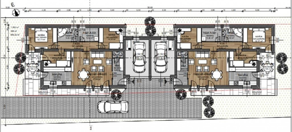 A projekt most indul, várható átadás 2026. 3. negyedév. A házhoz tartozó telek területe 500m2, még elérhető mind az első, mind a hátsó ház, így még lehetőség van választani.
