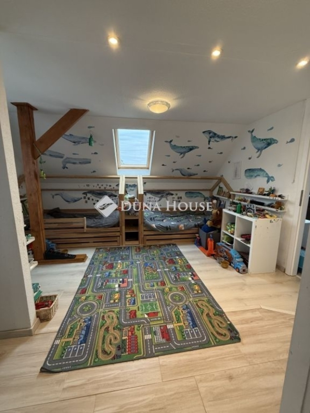 a felső szinten található nagyobb szoba igény esetén kettéosztható, így rugalmasan alakítható akár több gyermek számára is