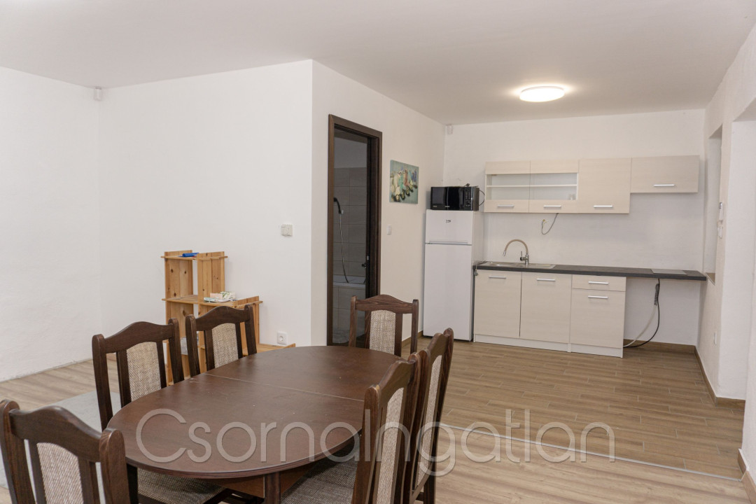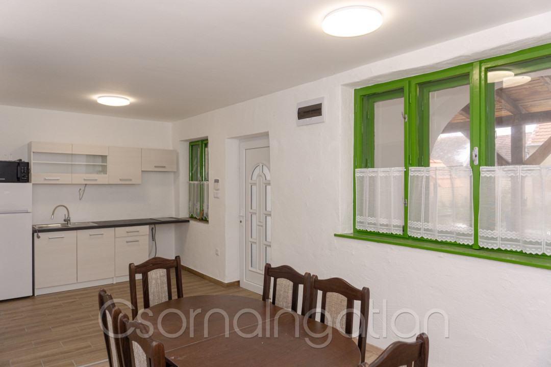 120 m2-es két lakrészes családi ház 4388 m2-es telken eladó.
