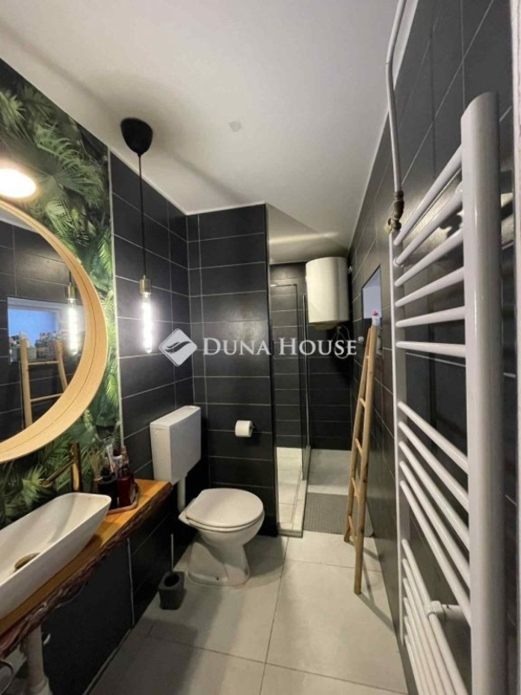 Fűtése gázkazán radiátorokkal, a fürdőben törölközőszárítóval, az amerikai konyhás nappaliban pedig elektromos padlófűtéssel kiegészítve.