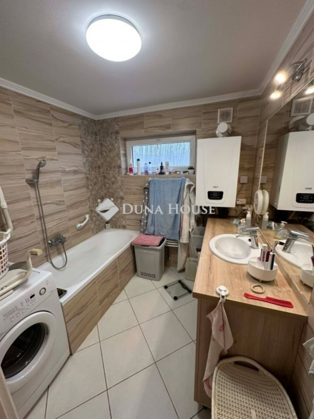 Az otthon melegéről gázcirkó, a nyári kellemes hőérzetről inverteres klíma gondoskodik. A hőleadás padlófűtéssel és radiátorokkal történik. A kert öntözésére fúrt kút áll rendelkezésre.