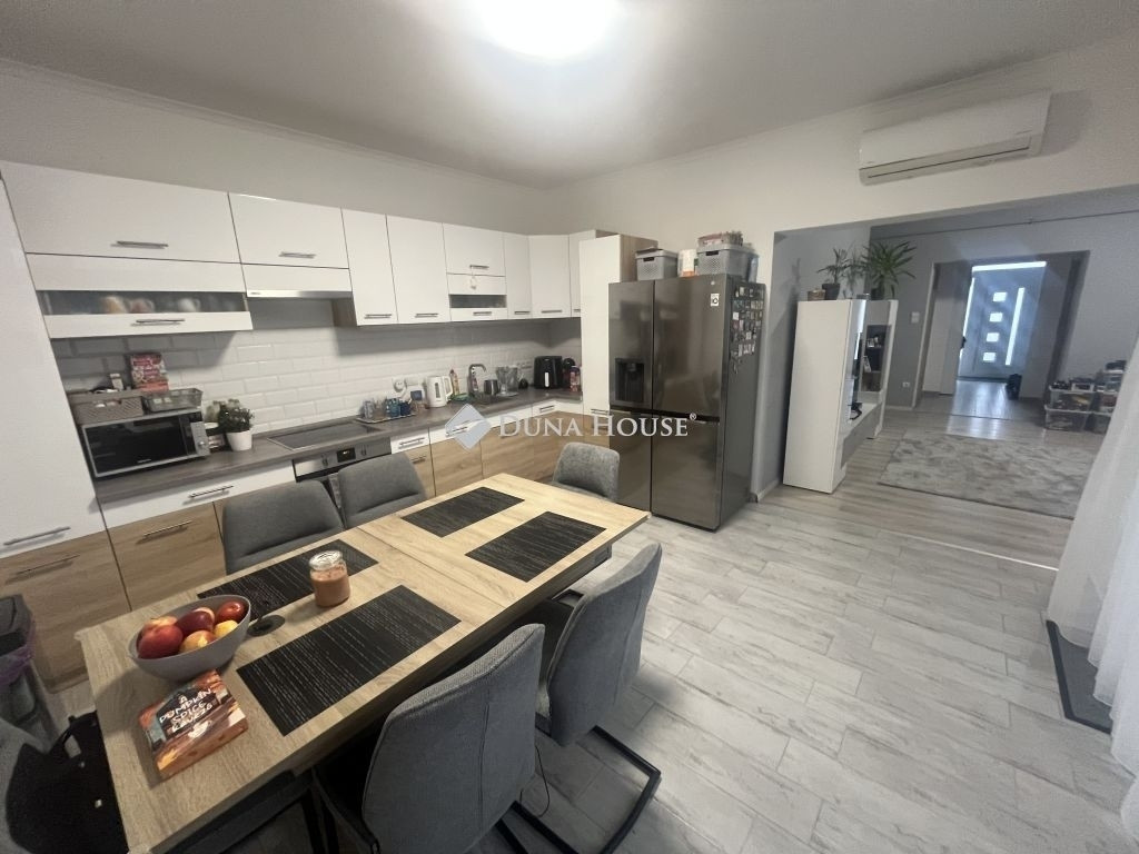 Eladóvá vált Albertirsán egy 2020-ban épült ikerház fél. A 91nm hasznos alapterületű otthon téglából épült, 15cm homlokzati szegeteléssel rendelkezik. A három hálószoba, a tágas nappali, konyha-étkező és a külön helyiségkénti is használható fedett, üvegportálos terasz tökéletes életteret biztosít egy család számára. Az otthon melegéről gázcirkó, a kellemes nyári hőmérsékletről kettő inverteres hűtőfűtő klíma gondoskodik. A 5Kw teljesítményű, bővíthető napelemrendszernek és a korszerű szigetelésnek köszönhetően a ház rezsije rendkívül alacsony. Az elektromos nagykapun át megközelíthető udvar öntözése fúrt kúttal is megoldható. Gépjárművét biztonságosan tárolhatja a zárt garázsban a leendő tulajdonos. Amennyiben elektromos autóval rendelkezik, a töltés megoldott.
