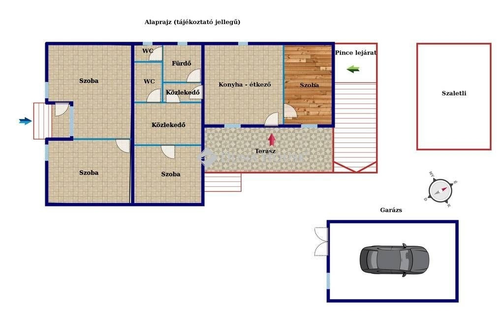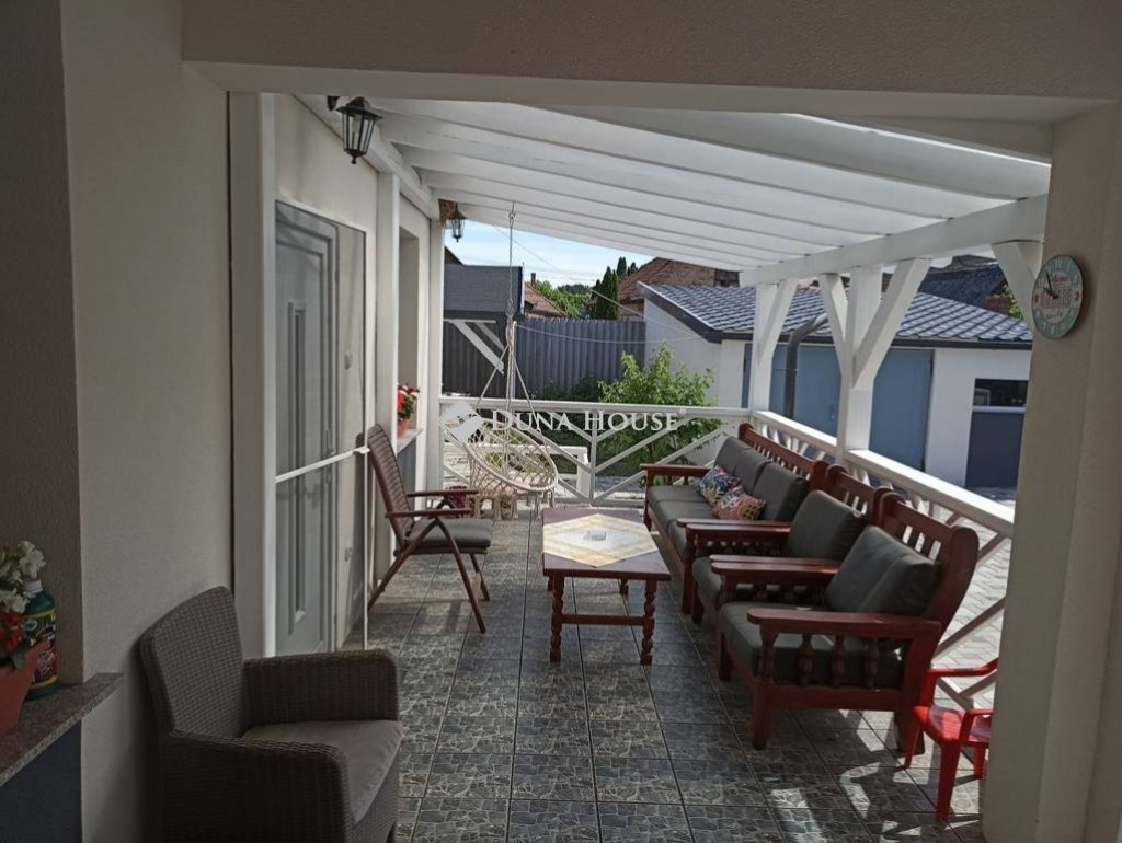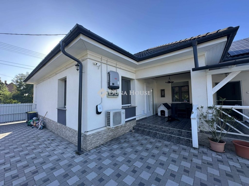 Az ingatlan lokációja kiváló lehetőségeket rejt magába. Az épületben négy szoba, konyha, étkező, közlekedő, fürdő, valamint wc helyiségek lettek kialakítva. Az utcafrontról is megközelíthető, jelenleg szobaként funkcionáló helyiségek, kiváló lehetőséget nyújtanak üzlet, iroda vagy akár vendéglátó egység kialakítására. A lakórésztől való elszeparálás átalakítás nélkül megoldható. A jelenlegi tulajdonos épületenergetikai szakember. Gondos odafigyelésének köszönhetően a mindenre kiterjedő felújítás végén, korunk energetikai es esztétikai elvárásainak teljes mértékben megfelelő álomotthon született. A rekonstrukció során a tető Bramac antracit cseréppel lett fedve melyre 6,67 kW teljesítményű 15kW-ig bővíthető Q-cells napelemek kerültek felszerelésre. A megtermelt elektromos energia szaldós elszámolású. Az új födémgerendák 15 cm vastag Rockwool kőzetgyapot szigetelést és 22 mm-es osb fedést kaptak. A teljes épületben álmennyezet lett kialakítva melybe további 10 cm-es hőszigetelés, valamint a 3 fázisú egyenként 16 A-es elektromos hálózat vezetékei kerültek bevezetésre. A nyílászárók háromrétegű, gyárilag hőszigetelt üvegezéssel, erősített roto vasalattal rendelkeznek. A 60 cm vastag külső falak 5-10 cm hungarocellszigetelést kaptak. Az otthon fűtéséről-a napelemeknek köszönhetően díjmentesen működő kettő darab Nord, telefonról is vezérelhető klíma, valamint a meleg víz előállítását biztosító, a radiátorok és a padlófűtés fűtési vizét melegítő Baxi Nuvola beépített tartályos gázkazán gondoskodik. A fűtés szintén vezérelhető okostelefonról is. A riasztó és kamerarendszernek köszönhetően Ön bárhonnan felügyelheti otthonának biztonságát. A viacolorozott udvarról elérhető fedett terasz a 30 nm alapterületű tágas szaletli tökéletes színtere lehet családi rendezvényeknek melyeken a gyermekek önfeledten játszhatnak a parkosított udvaron. Gépkocsiját a fűtött, különálló garázsban tárolhatja.