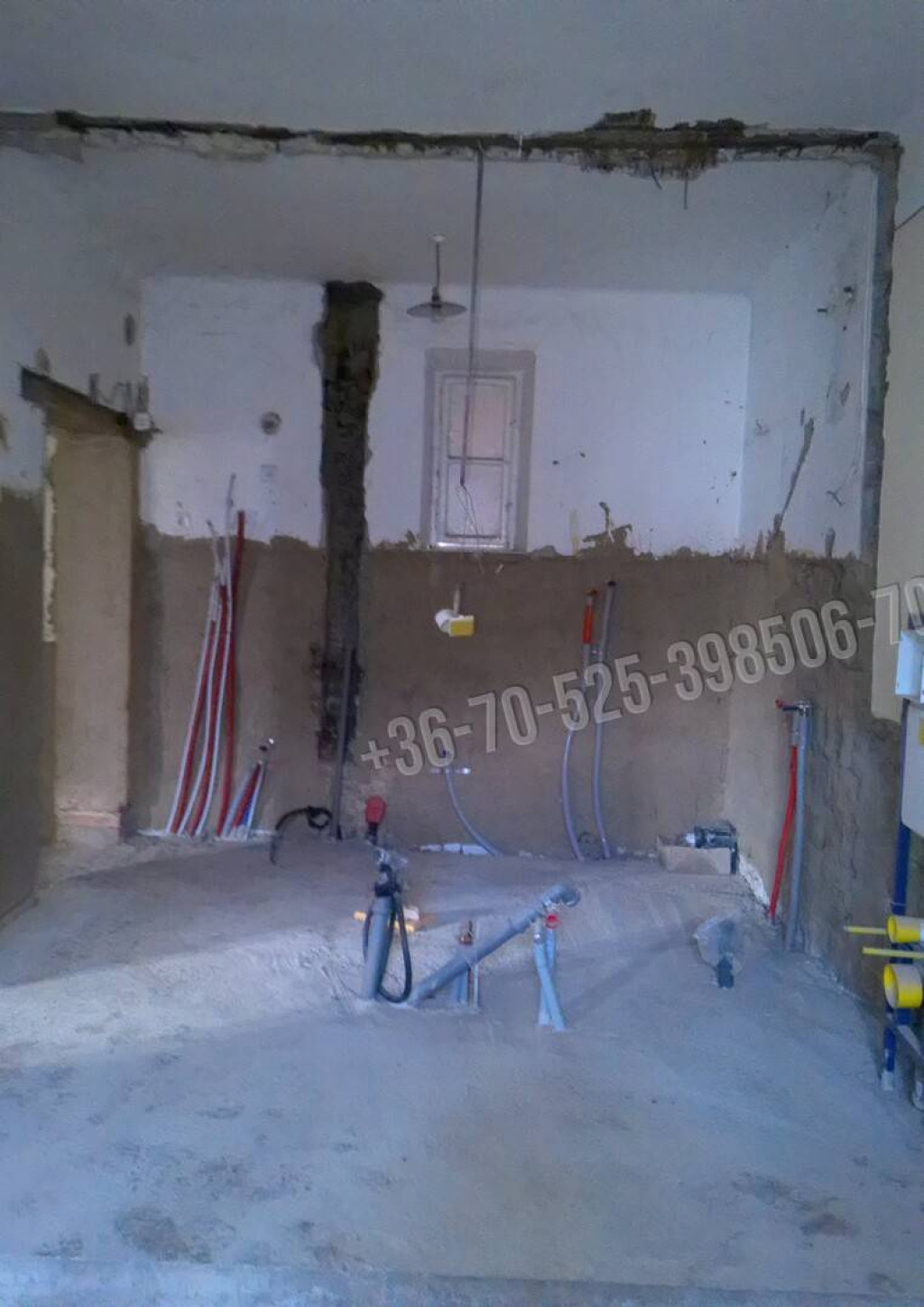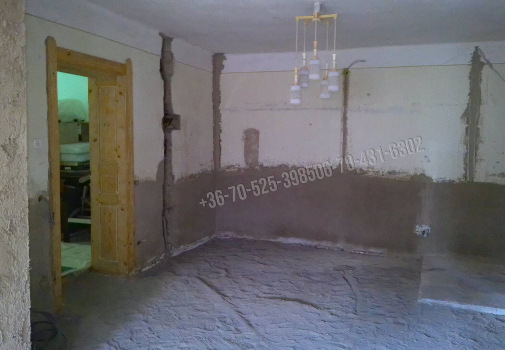 A házban megtalálhatóak az új víz, csatorna, fűtéscsövek és a falban az új elektromos vezetékek.
