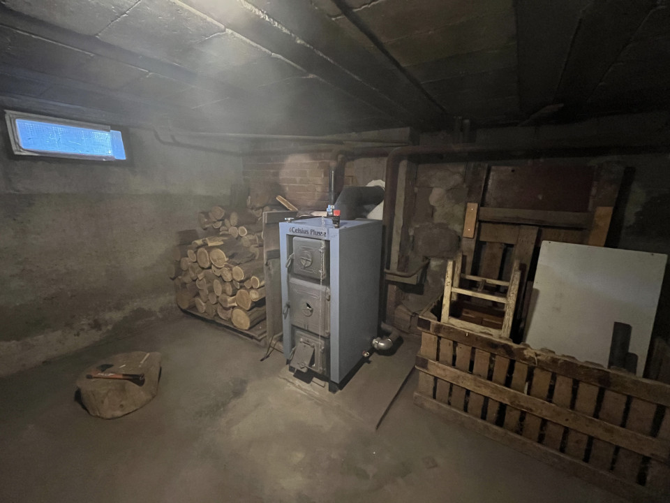Az épület alatt egy 20 m²-es száraz pince található, ahol a vegyes tüzelésű kazán üzemel. A ház fűtése radiátorokon keresztül történik, a meleg vizet villanybojler biztosítja.