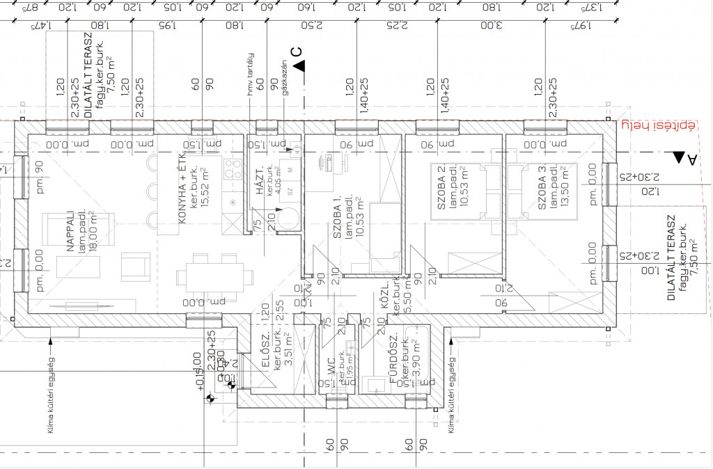Tetőszerkezet: Terrán antracit tetőrendszer, színazonos szinterezett alumínium csatornával.