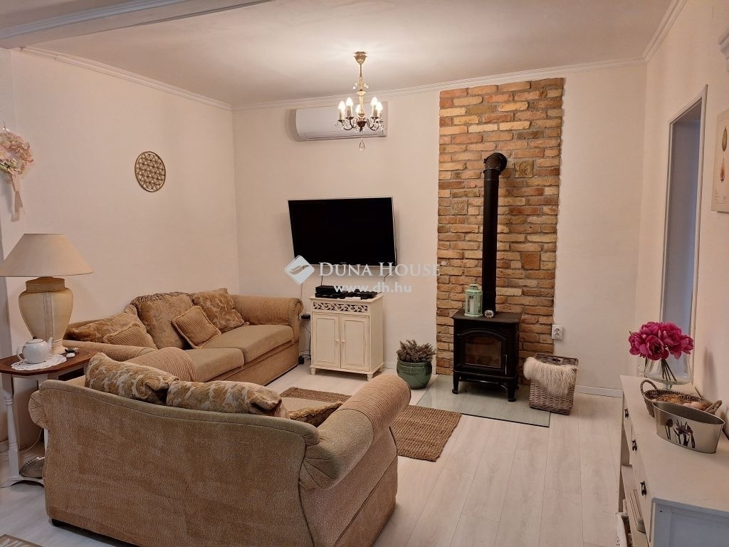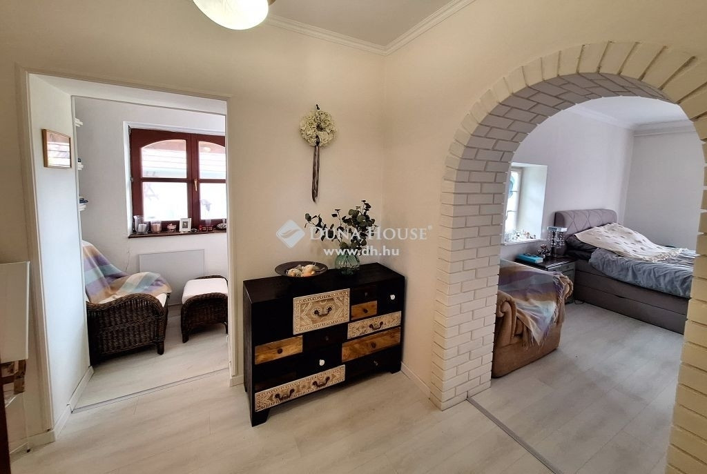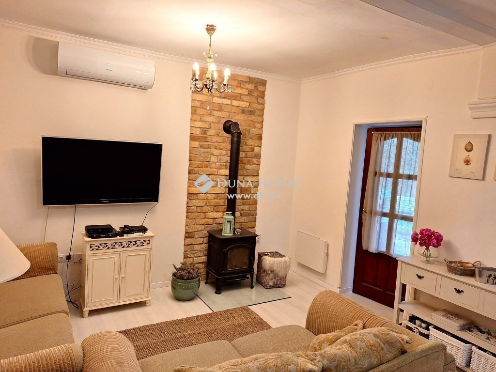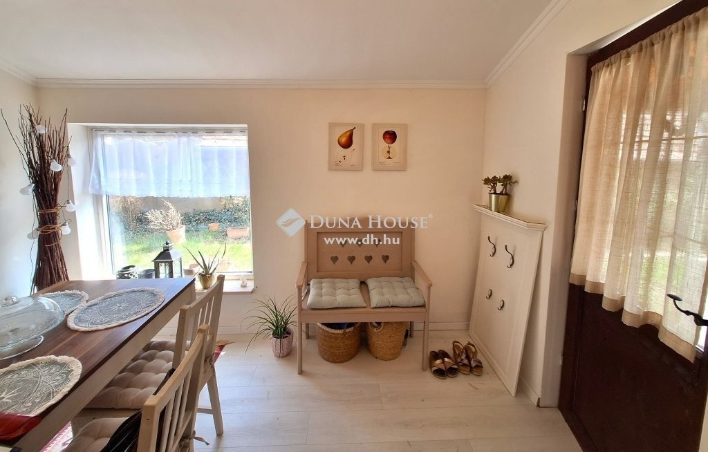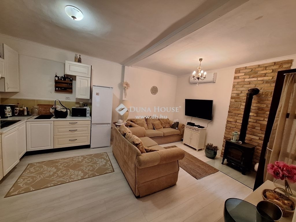 Alcsútdobozon eladó összközműves, igényesen felújított, tornácos parasztház!A kedves, egyedi hangulatot árasztó régi parasztház vályogból épült. A letisztult stílus, a boltíves átjárók, a fehérre meszelt falak, az egylégtér felüdülést adnak testnek és léleknek egyaránt. A felújítás során téglából hozzáépítettek egy belépőt és 10m2-es étkezőt, így az alapterület 65 m2-re nőtt. Az amerikai konyhát a 21m2-es, kertkapcsolatos nappali sarkában helyezték el, ahol esténként a kandalló tüze melegít. A 20m2-es hálószoba ablakai a szeretettel gondozott kertre néznek. A 4m2-es fürdőszobában kád szolgálja a kényelmet. A tornácból elcsípve egy kicsit napsütötte olvasózugot alakítottak ki. A melegvizet villanybojler szolgáltatja. A kellemes hőmérsekletet télen-nyáron a hűtő-fűtő Gree klímaberendezés biztosítja. Több helyiségben elektromos fali panelek állnak rendelkezésre. Az eldugott hátsó 8m2-es fedett terasz tökéletes hely az ejtőzésre. A hozzáépített, födém nélküli,13m2-es tároló könnyedén átalakítható egy külön bejáratú lakrésszé. A kert végébe vájt pici pince nyaranta hűtőkamraként jó szolgálatot tesz. Az 543m2-es palákkal bekerített kertben az intimitás biztosított.Érdekli ez a csodás ingatlan? Kérem keressen!