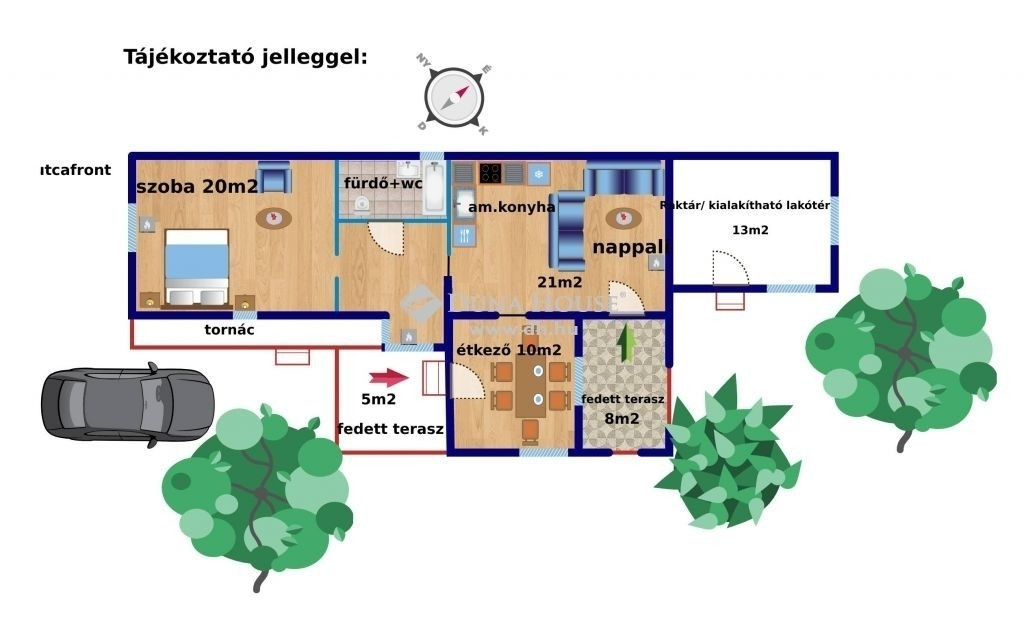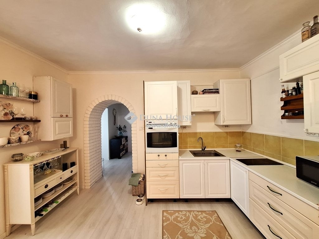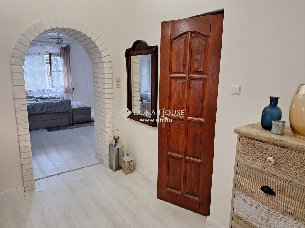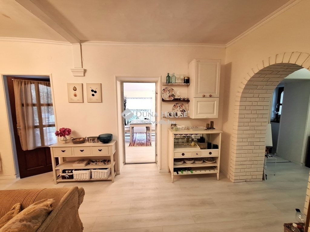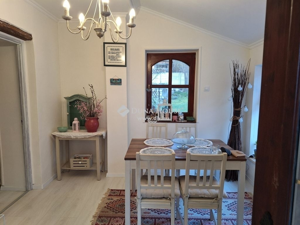 Alcsútdobozon eladó összközműves, igényesen felújított, tornácos parasztház!A kedves, egyedi hangulatot árasztó régi parasztház vályogból épült. A letisztult stílus, a boltíves átjárók, a fehérre meszelt falak, az egylégtér felüdülést adnak testnek és léleknek egyaránt. A felújítás során téglából hozzáépítettek egy belépőt és 10m2-es étkezőt, így az alapterület 65 m2-re nőtt. Az amerikai konyhát a 21m2-es, kertkapcsolatos nappali sarkában helyezték el, ahol esténként a kandalló tüze melegít. A 20m2-es hálószoba ablakai a szeretettel gondozott kertre néznek. A 4m2-es fürdőszobában kád szolgálja a kényelmet. A tornácból elcsípve egy kicsit napsütötte olvasózugot alakítottak ki. A melegvizet villanybojler szolgáltatja. A kellemes hőmérsekletet télen-nyáron a hűtő-fűtő Gree klímaberendezés biztosítja. Több helyiségben elektromos fali panelek állnak rendelkezésre. Az eldugott hátsó 8m2-es fedett terasz tökéletes hely az ejtőzésre. A hozzáépített, födém nélküli,13m2-es tároló könnyedén átalakítható egy külön bejáratú lakrésszé. A kert végébe vájt pici pince nyaranta hűtőkamraként jó szolgálatot tesz. Az 543m2-es palákkal bekerített kertben az intimitás biztosított.Érdekli ez a csodás ingatlan? Kérem keressen!
