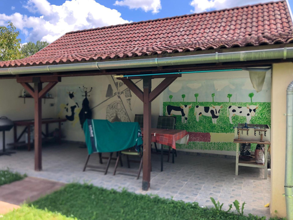 Telek: A több mint 5.000 négyzetméteres telek egyedülálló lehetőségeket kínál, amelyből körülbelül 2.000 négyzetméter gondozott, virágokkal és növényekkel tarkított kertként szolgál. A területen három tágas garázs található, amelyek egyenként 3 méter szélesek és 4 méter hosszúak, így mindegyik 12 m²-es, továbbá a rózsákkal díszített kert, több gyümölcsfa, tároló és borospince, valamint egy medence fedett terasszal, amely körülbelül 24 m², biztosítja a kényelmet és a pihenést. A medence mérete 8×4 méter. A telek hátsó, mintegy 3.000 négyzetméteres része magasabban helyezkedik el, így csodálatos kilátást nyújt, miközben további építési vagy pihenő lehetőségeket rejt. A telken található fúrt kút öntözéshez, valamint tyúkól teszi teljessé a vidéki élethez szükséges komfortot.