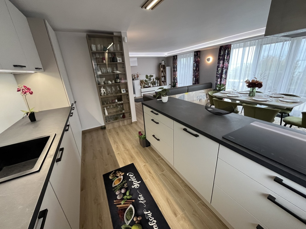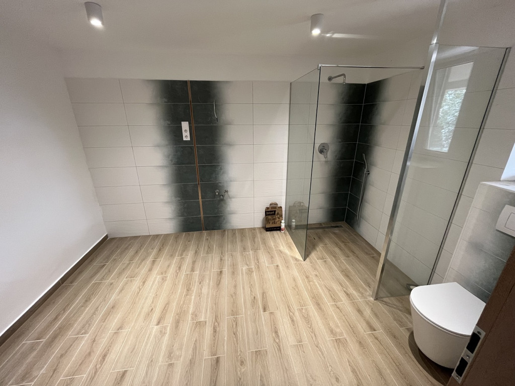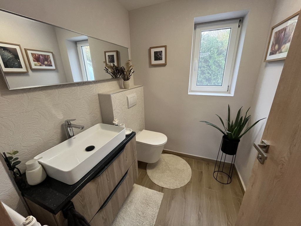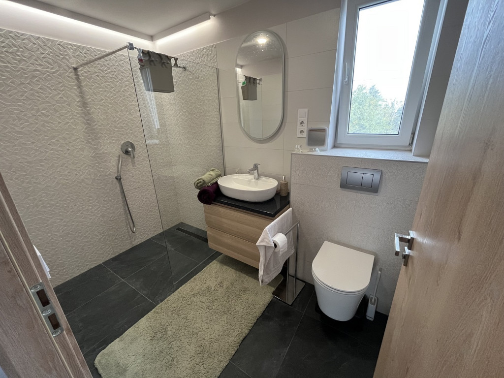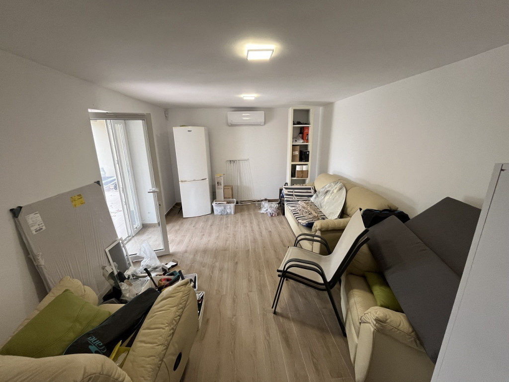 A legalsó szint önálló, 30 m2-es lakrész, melyhez 66 m2-es terasz tartozik. Ennek a szintnek a bútorozása még nem készült el.