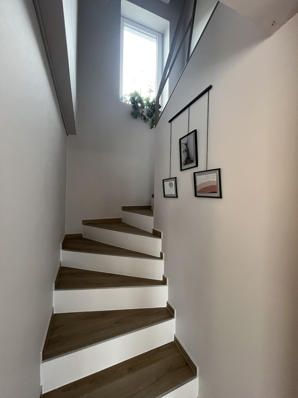 A másik lakosztály, a felső két szint összesen 90 m2 + 48 m2 erkély. Az emeleten 3 hálószoba, fürdőszoba, az alsó szinten amerikai konyhás nappali kapott helyet. Az lakrész teljes bútorozása és berendezése a vételár részét képezi.