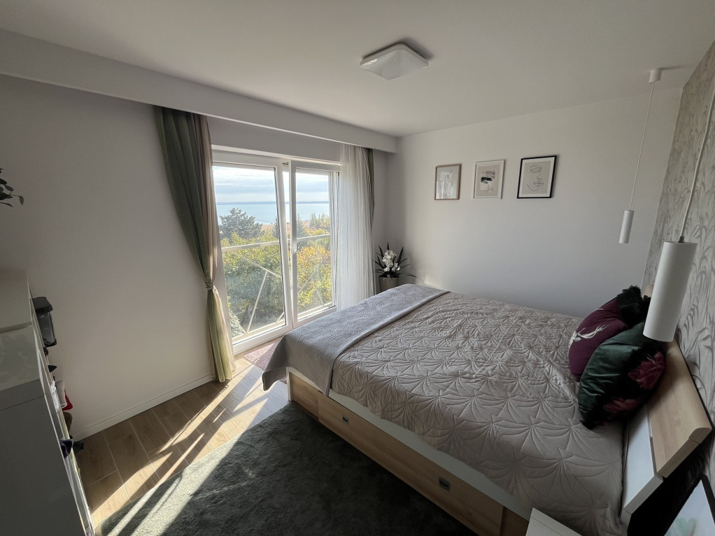 Alsóörs és Balatonalmádi között az ikonikus, SZUPER BALATONI PANORÁMÁS Római útról nyíló csendes, aszfaltozott zsákutcában lévő, 23 m széles telekre épített, az elmúlt pár évben teljeskörűen felújított, 3 szintes, kitűnő elrendezésű nyaraló épület eladó.