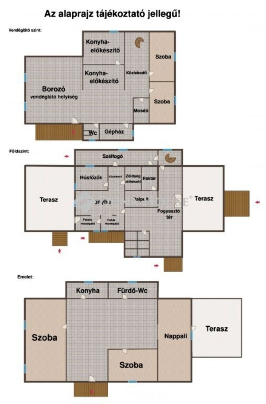 3 szinten terül el, összesen 5 szoba, 2 nappali, 2 konyha, 3 fürdő+WC található az ingatlanban