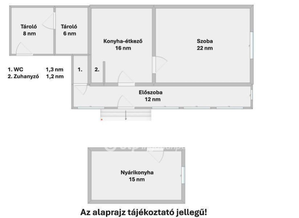 Fejér vármegyében, Alsószentiván frekventált részén, a főút mentén kínálok megvételre egy teljesen felújítandó, tehermentes 51 m2-es családi házat egy különálló 15 m2-es melléképülettel (lakószobaként használható) és 2358 m2-es telekkel. A ház főbb jellemzői: -Falazat: vályog -Tető: cserép -Helyiségek: 1 szoba, előszoba-közlekedő, konyha-étkező, zuhanyzó és WC. -Tartozik hozzá két gazdasági épület/tároló -Tulajdoni lapon: kivett lakóház, udvar, gazdasági épület -Közművek: Víz és villany a házban, gáz az utcában. Csatorna nincs, szennyvíz elvezetés emésztőbe történik. A telek mérete és jellege gazdálkodásra is kiválóan alkalmas! Elhelyezkedés: Alsószentiván Dunaföldvártól mindössze 15 km-re, Dunaújvárostól 30 km-re található. A település északkeleti részét a 61-es főút szeli át, ami kiváló közlekedést biztosít, távolsági buszjáratokkal. A faluban megtalálható óvoda, általános iskola, bevásárlási lehetőségek, vendéglátóegységek, orvosi ellátás, posta. Munkalehetőségek a közeli városokban. Finanszírozási lehetőségek: Az ingatlan Munkáshitelből, Babaváró támogatásból, valamint egyéb piaci hitelekből is finanszírozható! Az OTP Ingatlanpont szakértő csapata díjmentes hitelügyintézéssel, valamint megbízható ügyvédi háttérrel támogatja Önt a teljes adásvételi folyamat során! További információért és megtekintésért hívjon bizalommal!