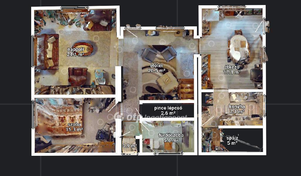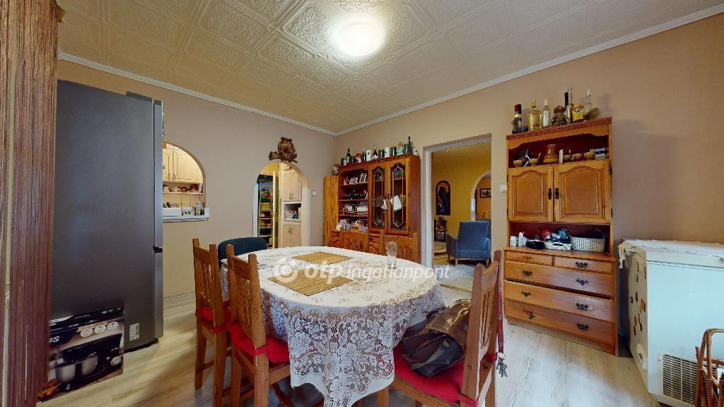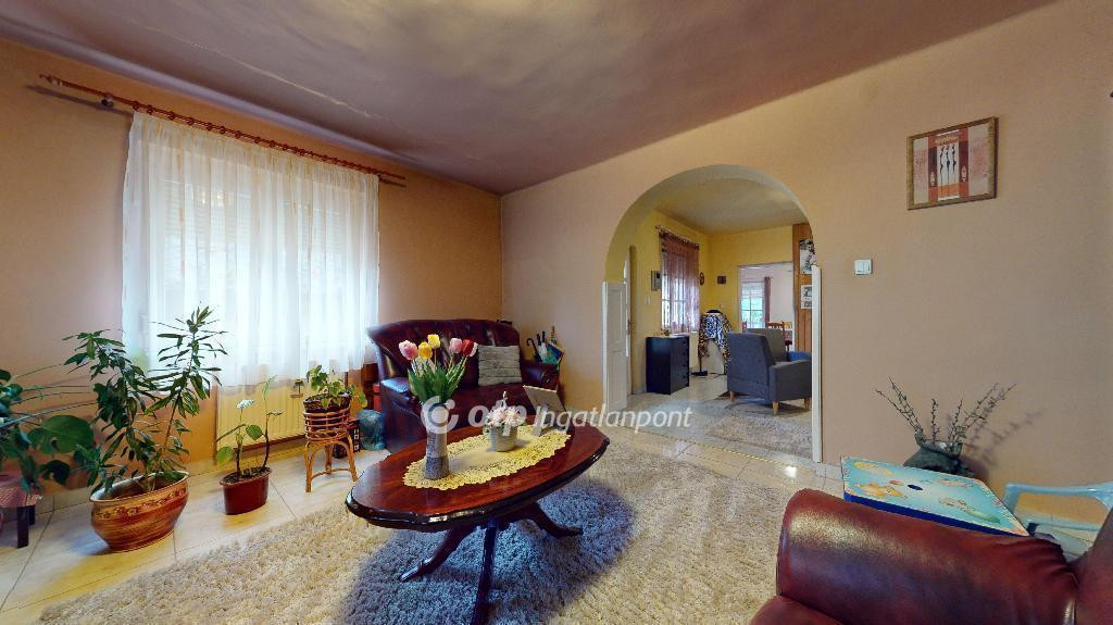 Az 1997-ban B30-as Porotherm téglából épült ingatlan egy 1526 nm-es telken helyezkedik el. Az ingatlan félig alápincézett, ahol a kazánház és egy zöldséges pince is helyet kapott. Az élület földszintjén található egy teljes értékű szoba, egy nagy nappali, társalgó, konyha + étkező + spájz, valamint fürdőszoba külön wc-vel. A lakóteret 2 külön bejáraton-, és a pincén keresztül is megközelíthető. Ezen a szinten az étkezőből nyílik egy nagy tágas terasz, amely rengeteg lehetőséget rejt magában.