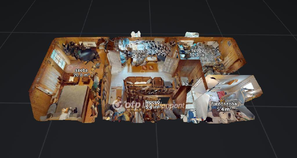 Az emeleten két szoba, egy társalgó, valamint egy zuhanyzós fürdőszoba külön wc-vel kapott helyet, így nagy családok számára is elegendő életteret nyújt az ingatlan.
