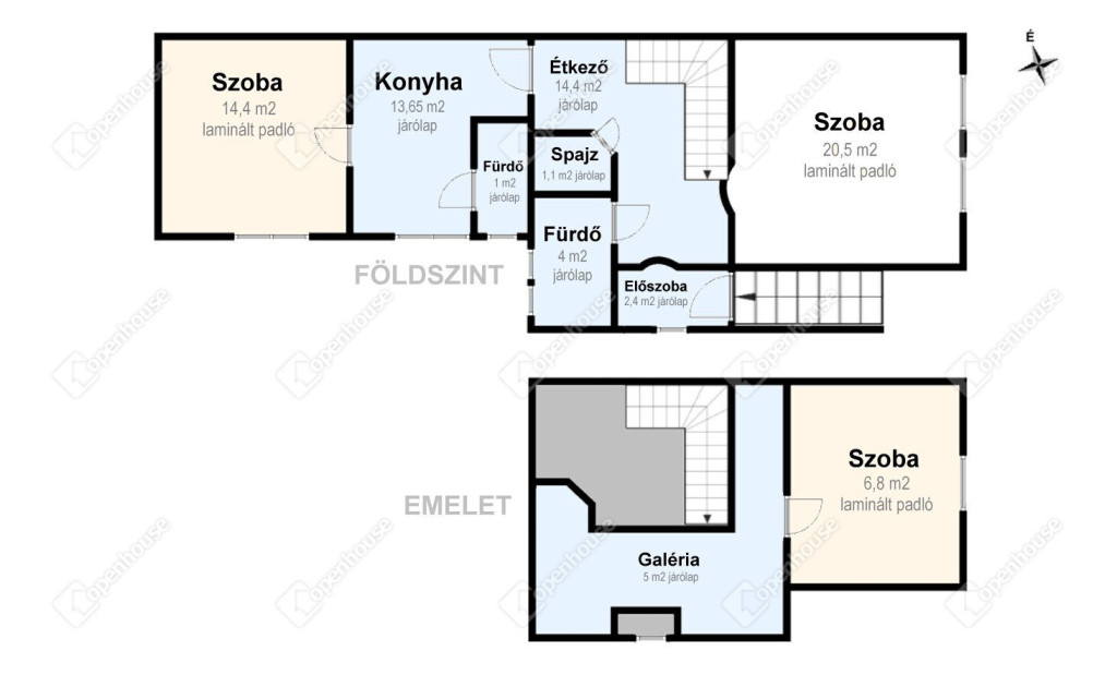 - a szobák laminált padlóval burkoltak, míg az összes többi helyiség járólappal