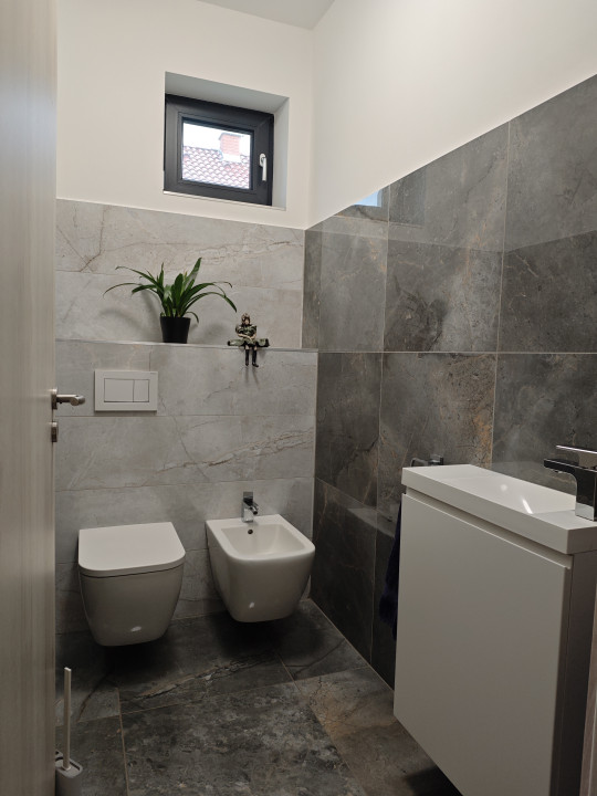 Nyílászárók: korszerű 2 légkamrás, antracit színű műanyag ablakok elektromos redőnnyel, szúnyoghálóval felszerelve.