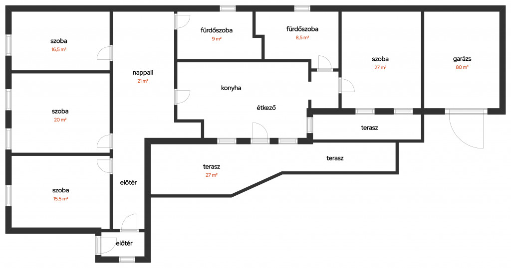 160 nm elosztása nappali + 4 hálós, dupla komfortos. Konyha + étkezővel.
