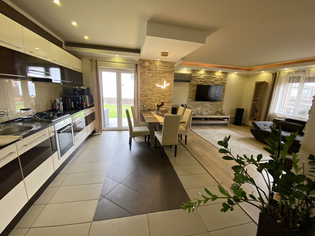 Az amerikai konyhás nappalihoz 38 nm-es terasz kapcsolódik - 10 nm fedett a többi része árnyékolóval védett.