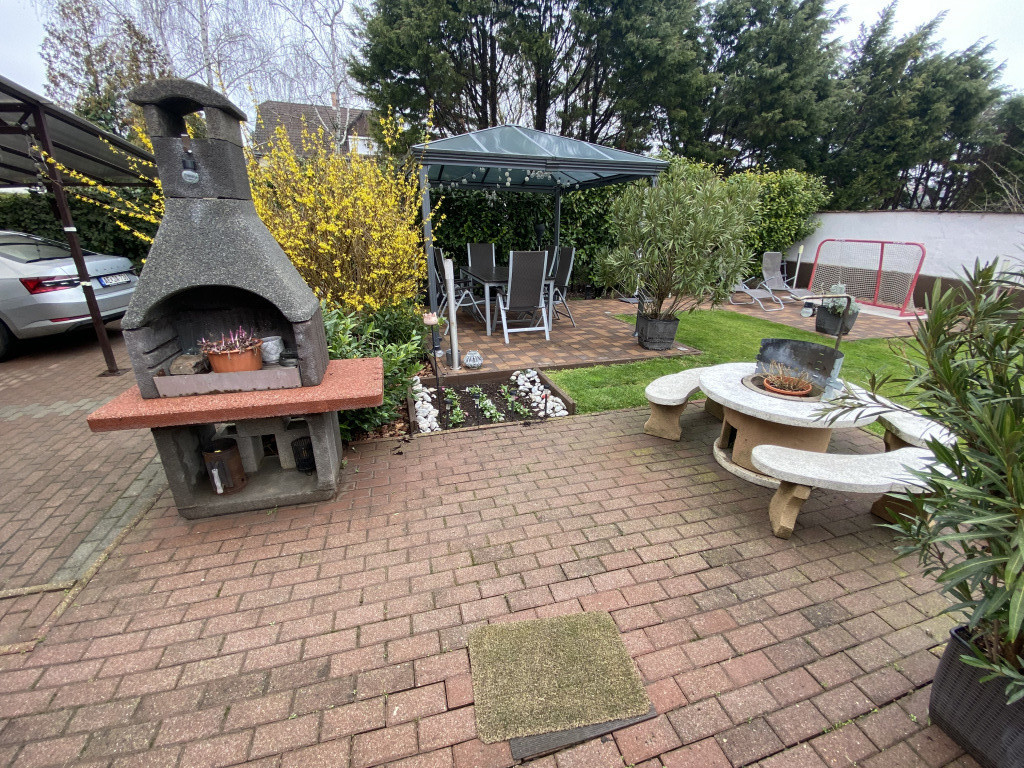 A kert szépen gondozott, kútról működő automata öntözőrendszer biztosítja a vízellátást. A szabadidő kellemes eltöltésére 5 személyes Jacuzzi, grillező, bográcsozó hely is kialakításra került. Tárolásra a 10 nm-es pince szolgál.