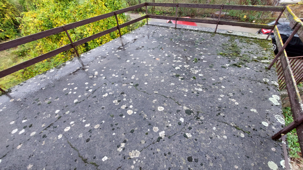 A vasbetonfödémes épület tetőterében: 2 szoba, előtér.(beépíthető, komfortossá tehető)