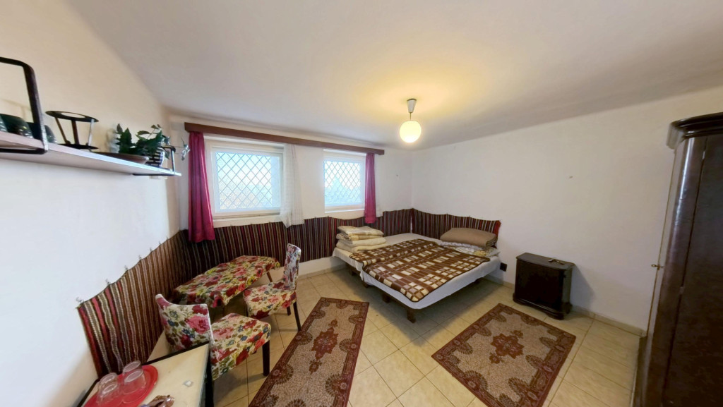 A hálóból egy IGAZÁN TÁGAS, VILÁGOS NAPPALIBA jutunk, melyből szintén közvetlenül léphetünk ki a már említett nagy erkélyre. A nappaliból az étkezőbe érkezünk, melyből nyílik egy jól bútorozható, tágas szoba. A LAKÓRÉSZ KÖRBEJÁRHATÓ, hiszen az étkezőből szintén a már említett kis előtérbe léphetünk. Az étkezőben egy szép CSERÉPKÁLYHA egészíti ki a fűtést. Az étkezőből szintén kiléphetünk a már említett tényleg nagy erkélyre, ahonnan egy lépcsőn keresztül a kertbe is lejuthatunk.