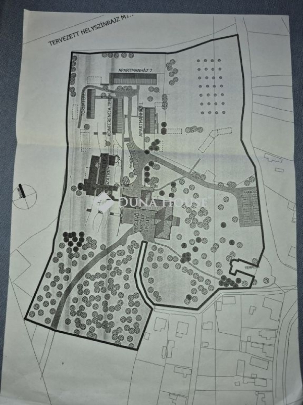 Az ingatlan egy 5,8 hektáros területen helyezkedik el, mely magántulajdonban van.