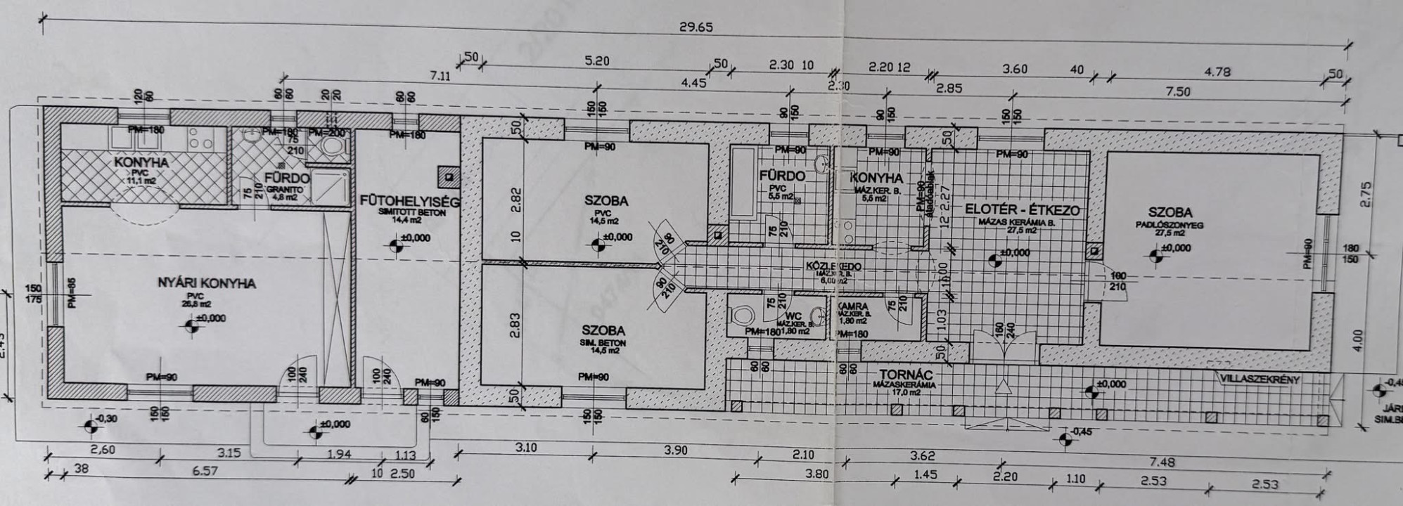 Fűtési rendszere: vegyes tüzelésű kazán + 2-2 db hűtő-fűtő klíma lakásonként.