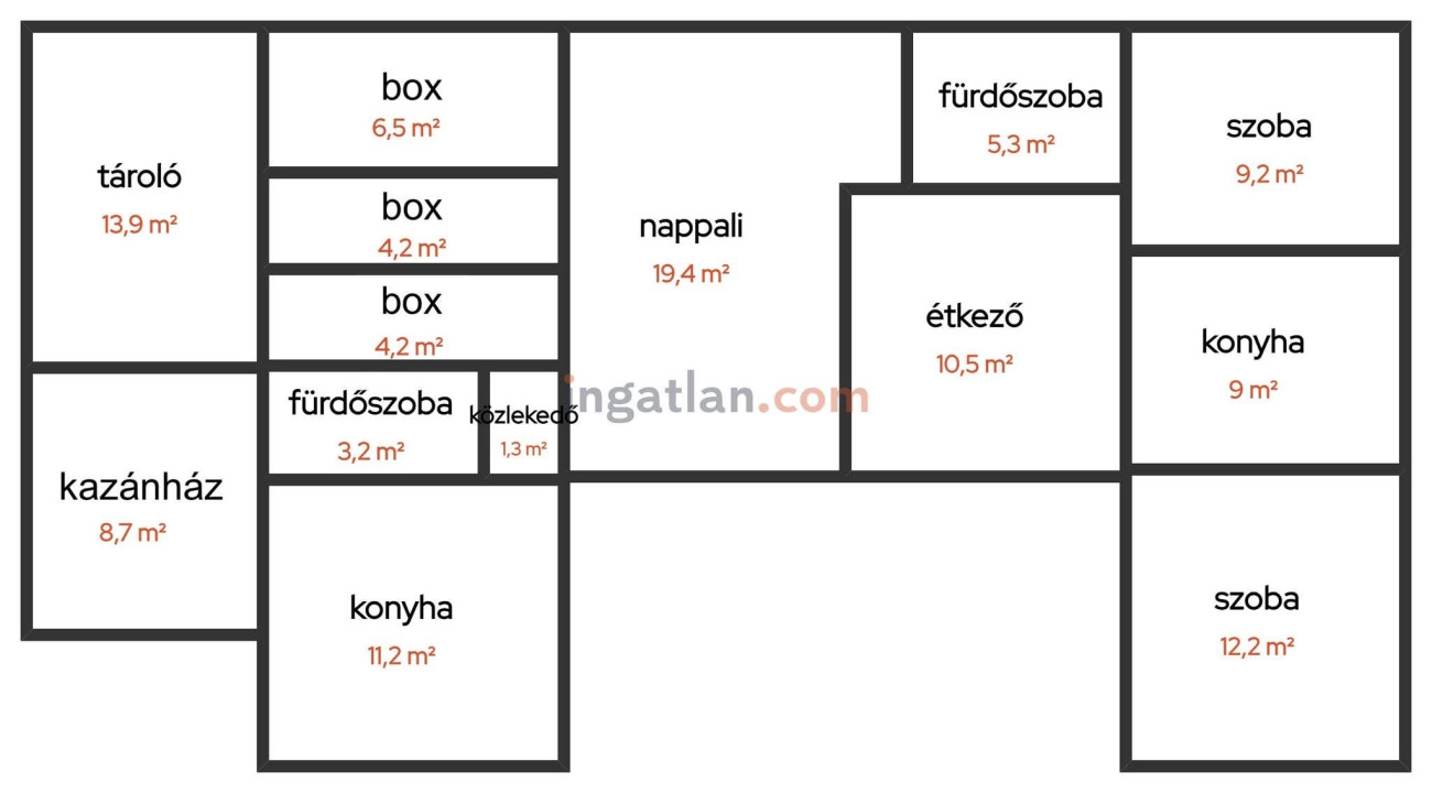 Az ingatlan összeközműves: villany, víz, gáz, csatorna bekötésre került.